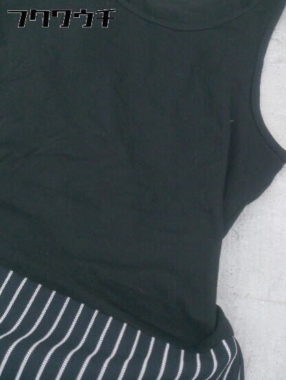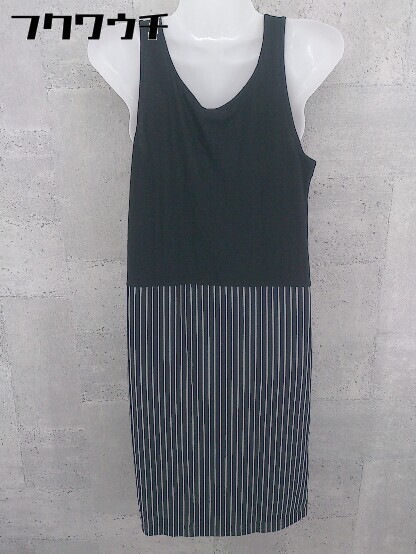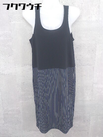 ◇ qualite カリテ ストライプ 切り替え ノースリーブ 膝下丈 ワンピース ブラック レディース
