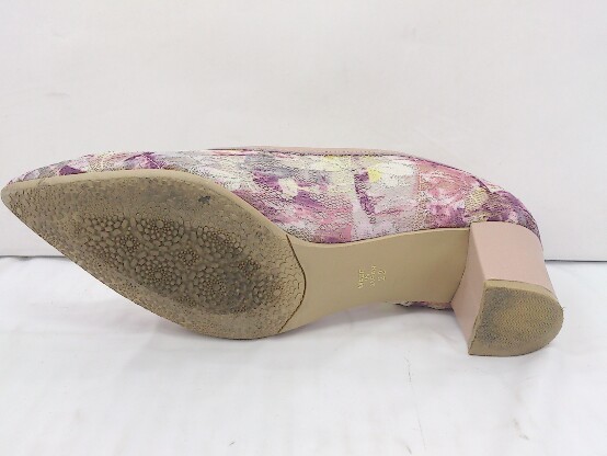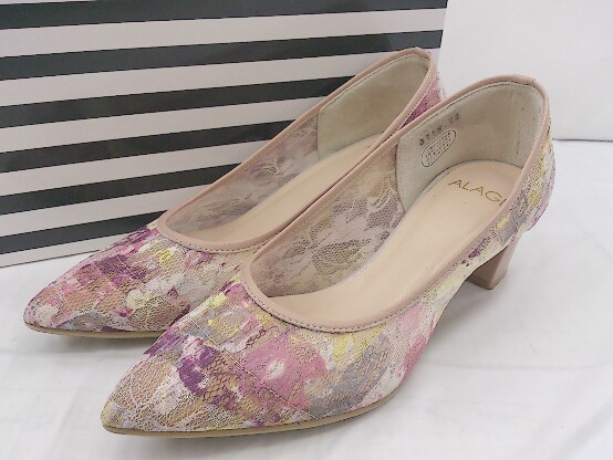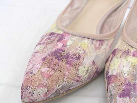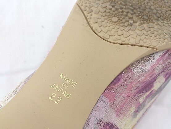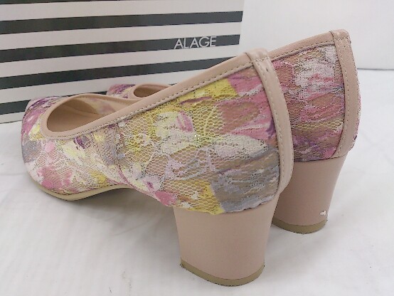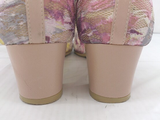 ◇ ◎ AKAKURA ALAGE レース 総柄 ポインテッドトゥ 小さいサイズ ヒール パンプス サイズ22 ピンク系 レディース