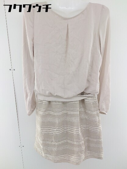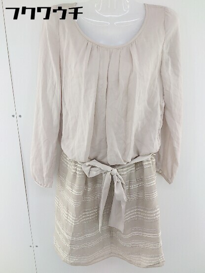 ◇ ◎ NATURAL BEAUTY 切替 ウエストゴム サイドジップ ラメ 長袖 膝丈 ワンピース サイズ40 ベージュ レディース