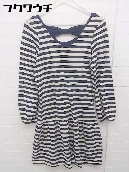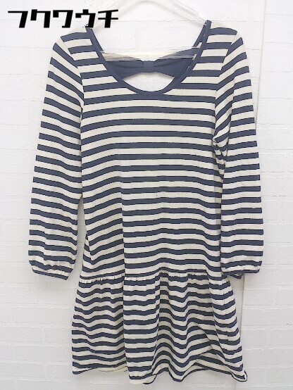 ◇ Ray BEAMS レイビームス ボーダー 長袖 ミニ ワンピース サイズF アイボリー系 ネイビー レディース