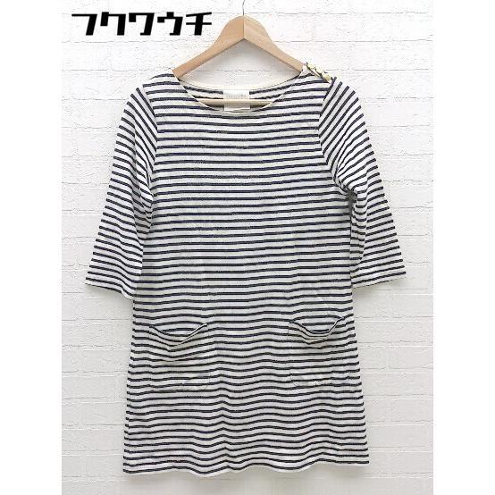 ◇ Ray BEAMS レイ ビームス ボーダー 七分袖 チュニック カットソー サイズ1 オフホワイト ネイビー レディース