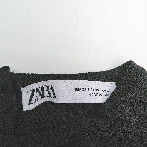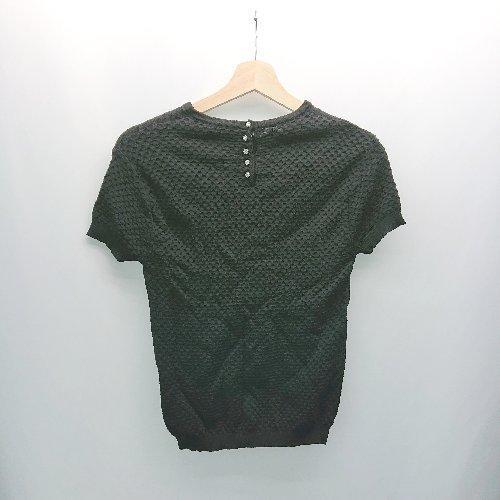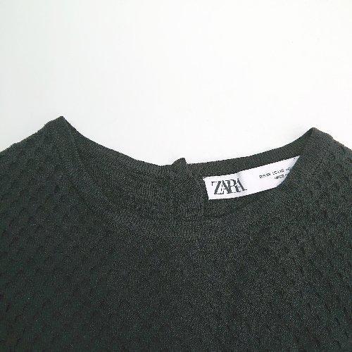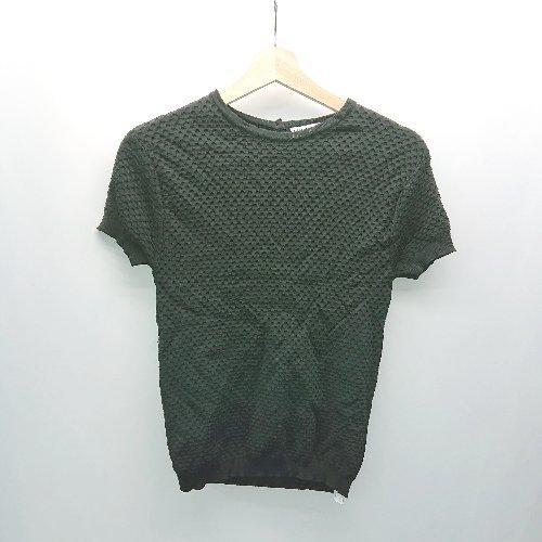 ◇ ZARA ザラ ラウンドネック バックボタン 凹凸生地 半袖 カットソー サイズUSA XS ブラック レディース E