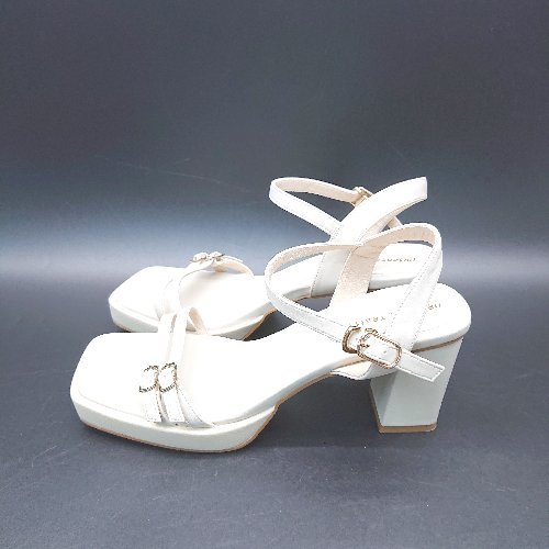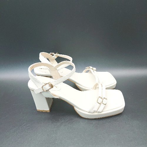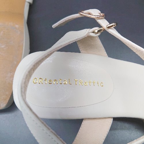 ◇ ORientalTraffic オリエンタルトラフィック スクエアトゥ 綺麗め ヒール高め サンダル サイズL ベージュ レディース E