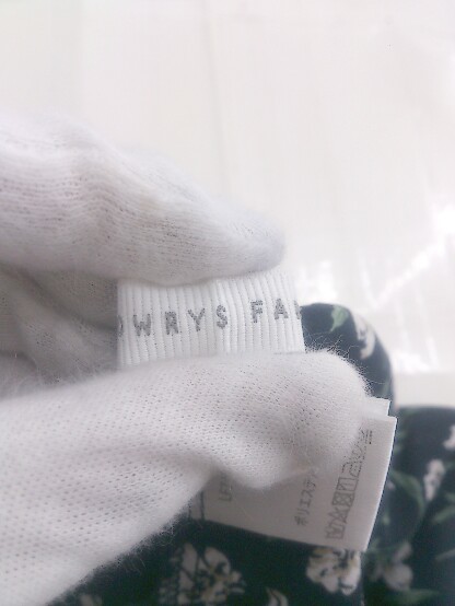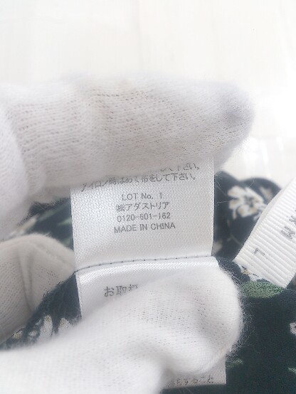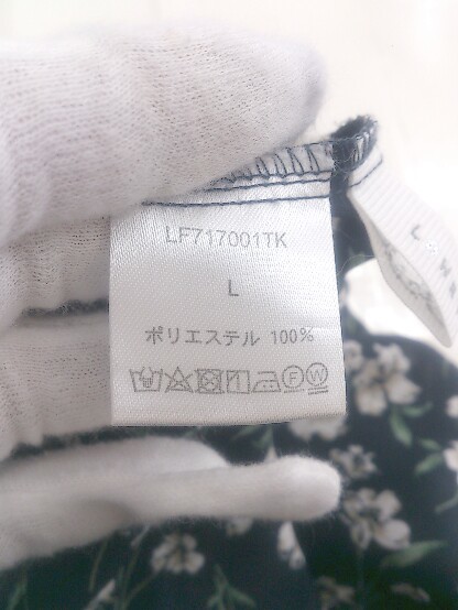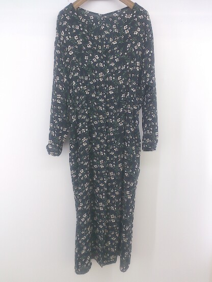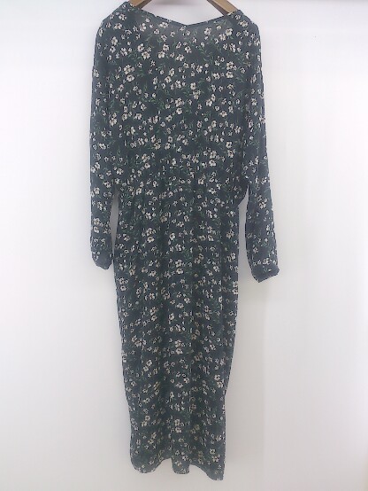 ◇ LOWRYS FARM 花柄 Vネック 長袖 膝下丈 ワンピース サイズF ダークネイビー ベージュ系 レディース P
