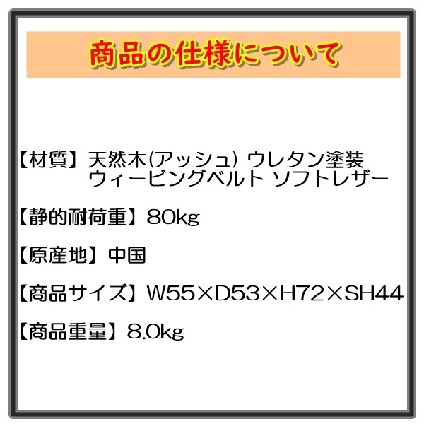![]() ダイニングチェア DGC-55 キャラメル 商品の仕様について 【材質】天然木(アッシュ) ウレタン塗装 ウィービングベルト ソフトレザー 【静的耐荷重】80kg 【原産地】中国 【商品サイズ】W55×D53×H72×SH44 【商品重量】8.0kg ◇◆発送について◆◇