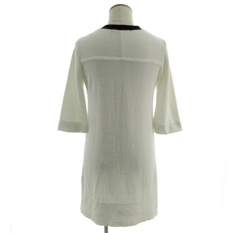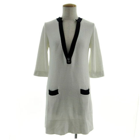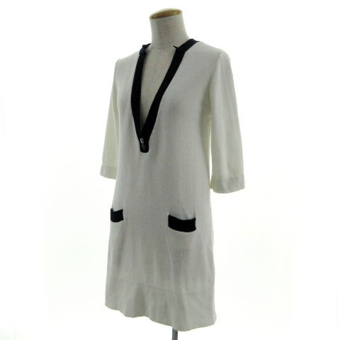 マカフィー MACPHEE トゥモローランド ワンピース ニット 七分袖 ミディ丈 コットン 配色 オフ白 ネイビー 紺 1 レディース