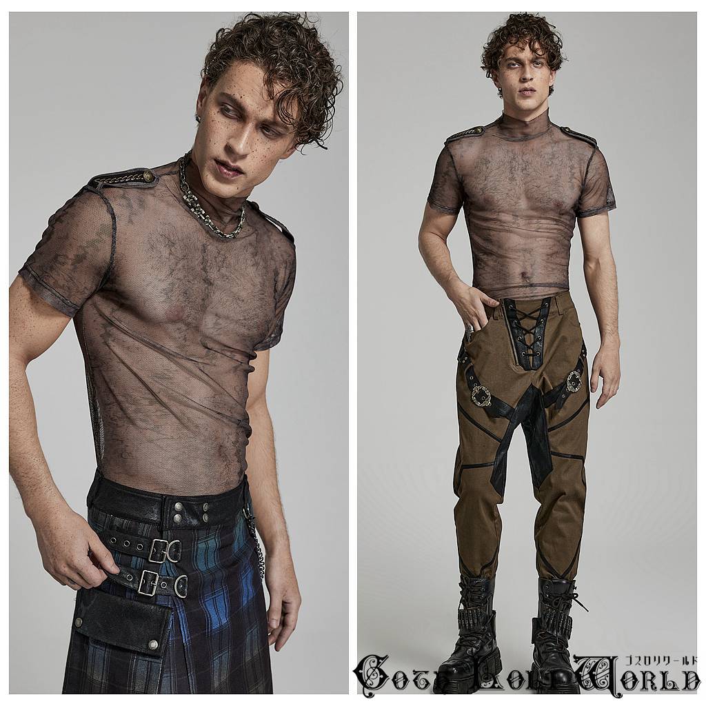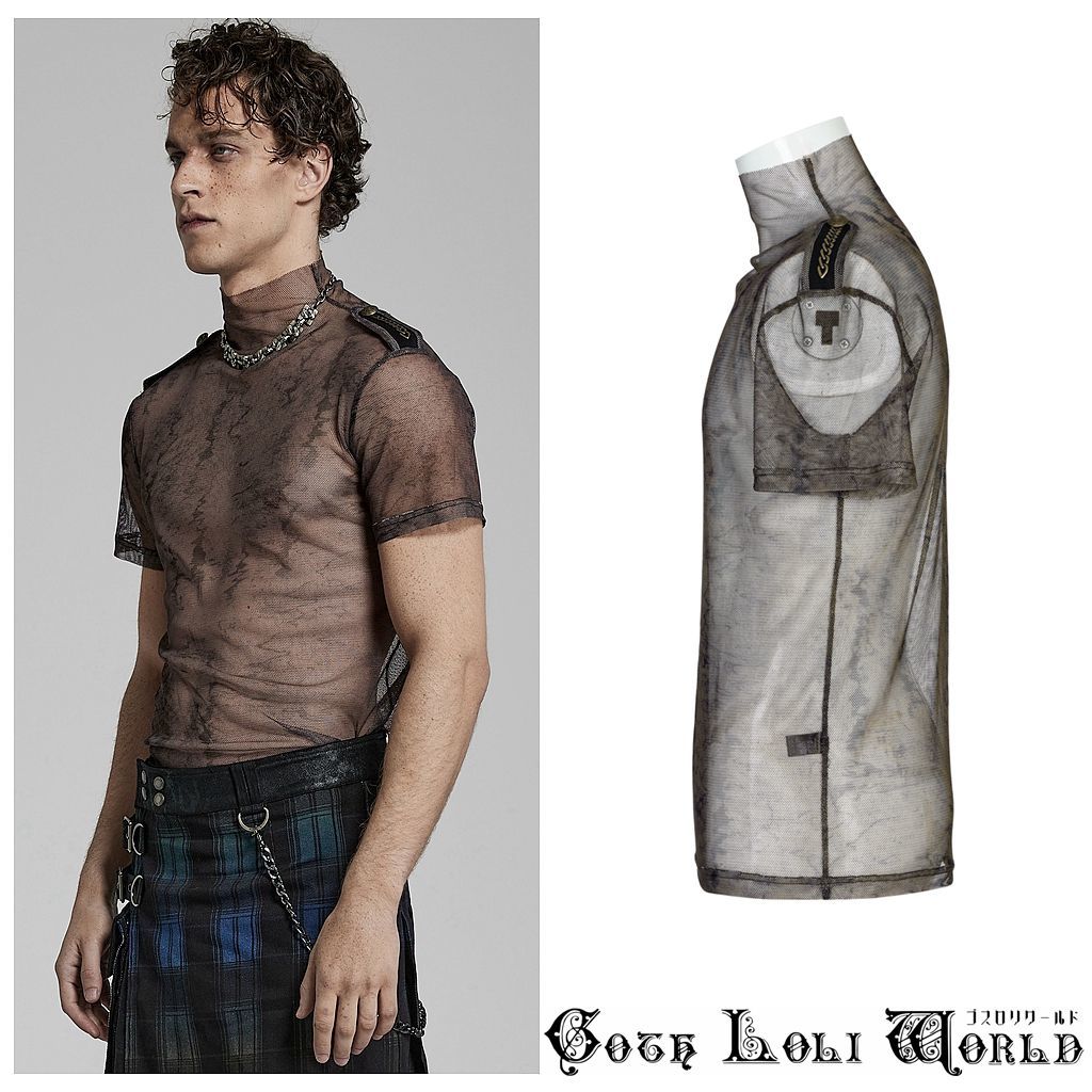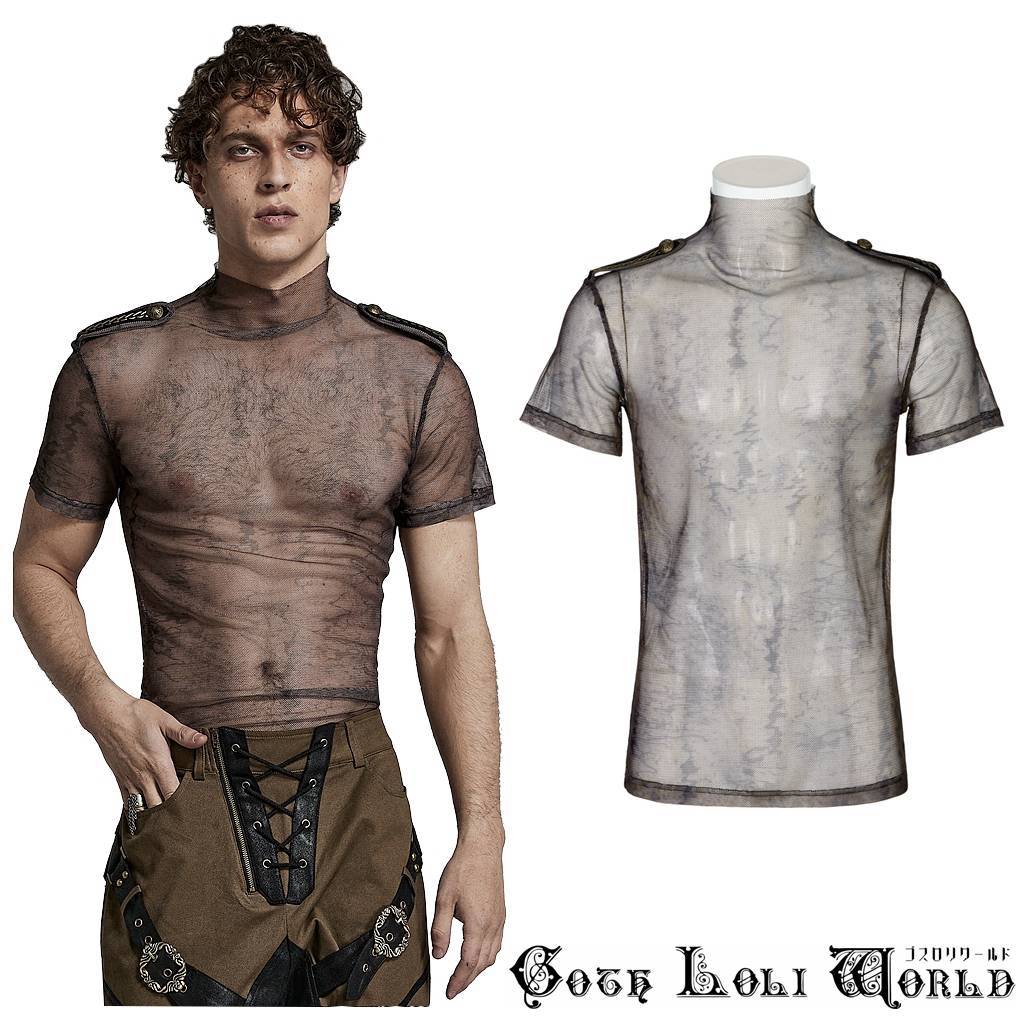 WT-802CO-S-M エポレット付モックネックシアータイト Tシャツ ブラウン ゴスロリワールド ゴシック パンク ロック ビジュアル系 V系