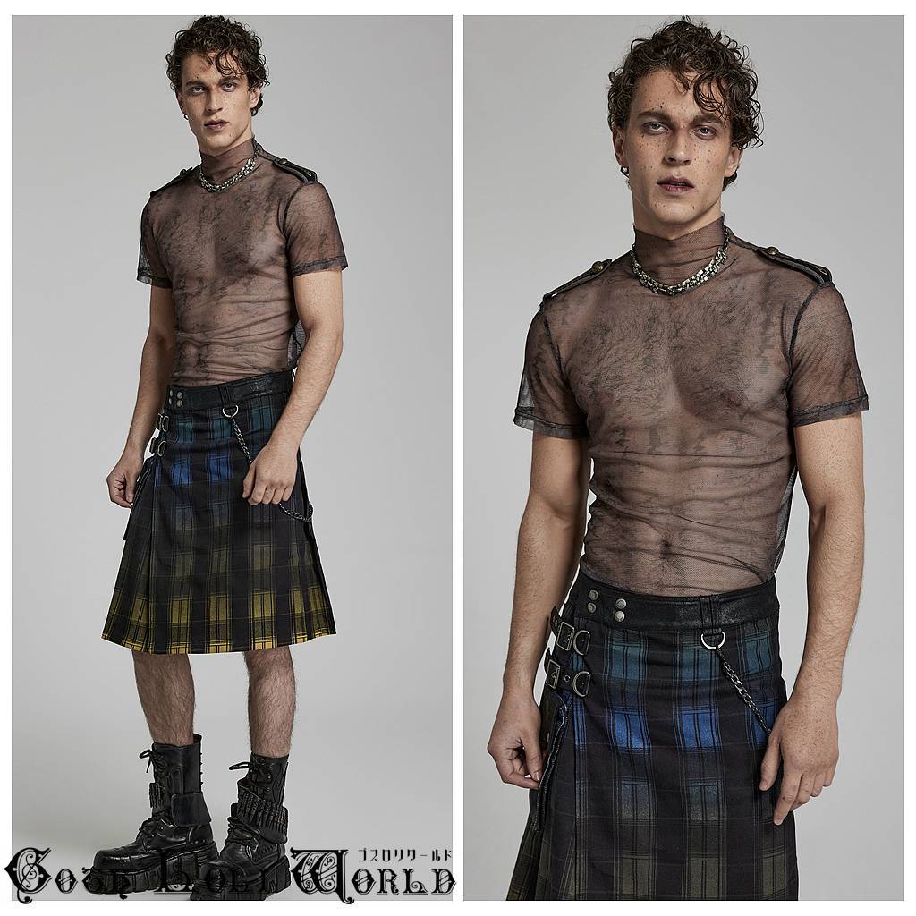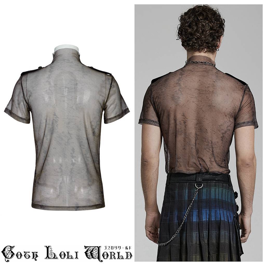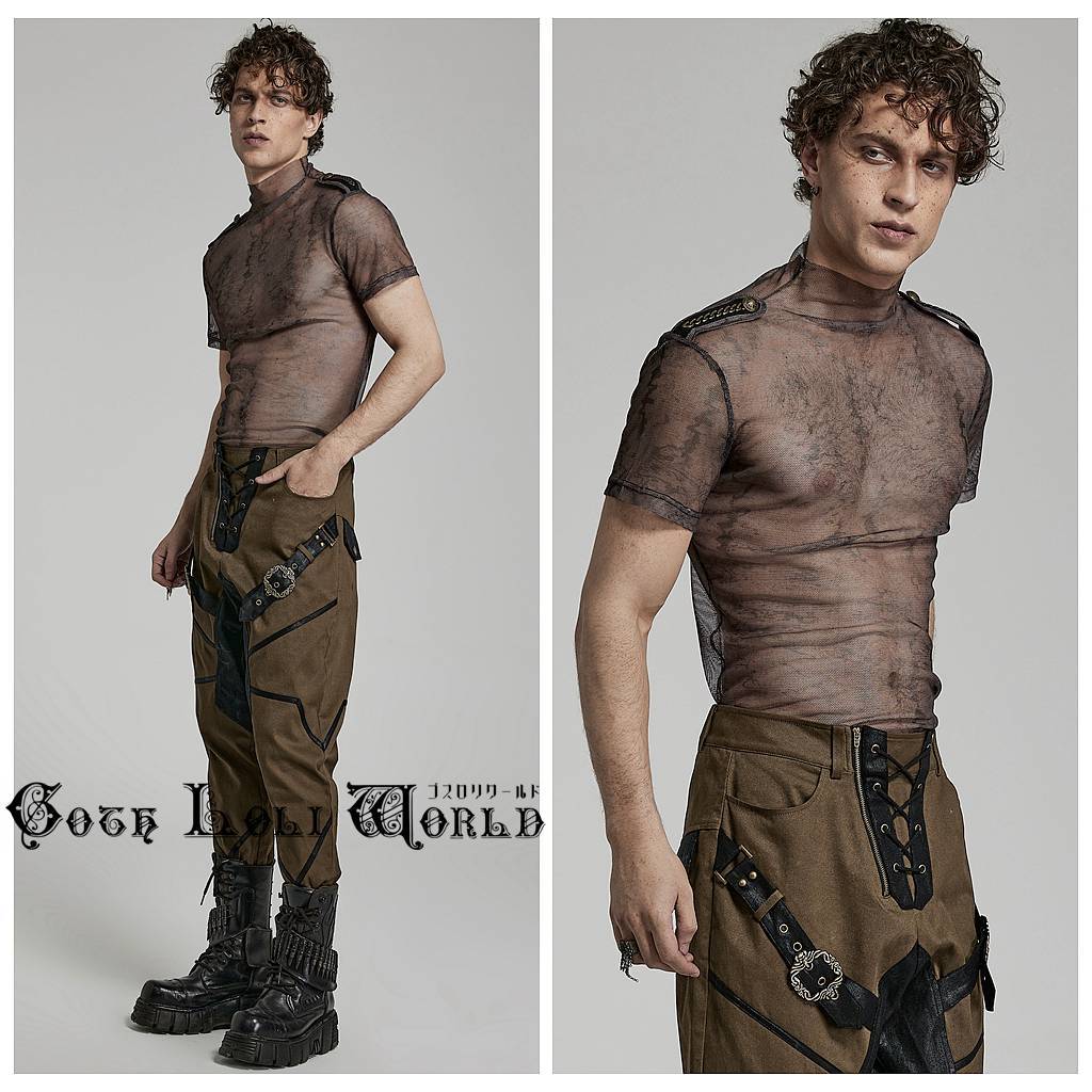 WT-802CO-S-M エポレット付モックネックシアータイト Tシャツ ブラウン ゴスロリワールド ゴシック パンク ロック ビジュアル系 V系