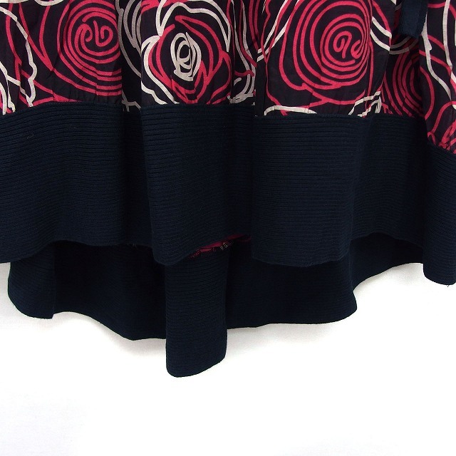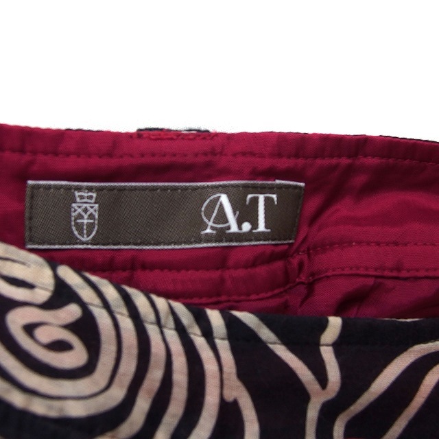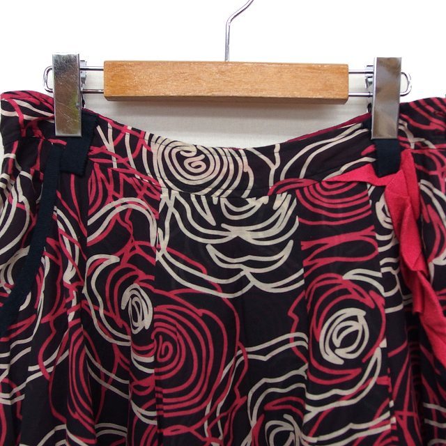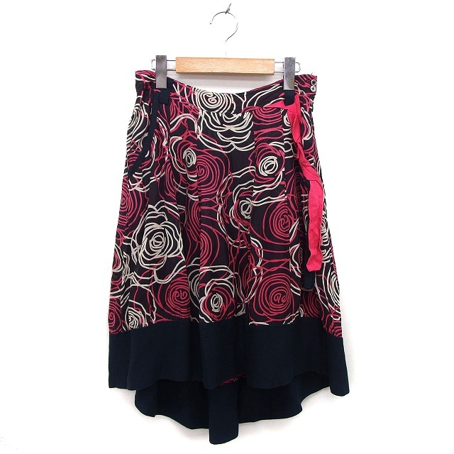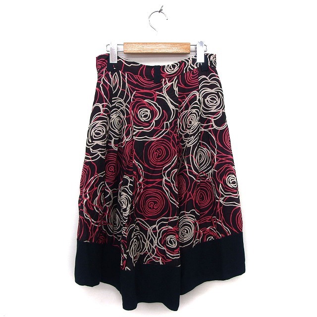エーティー アツロウタヤマ A/T スカート フレア ロング シルク混 透け感 リブ バラ柄 36 黒 ブラック /NT31 レディース
