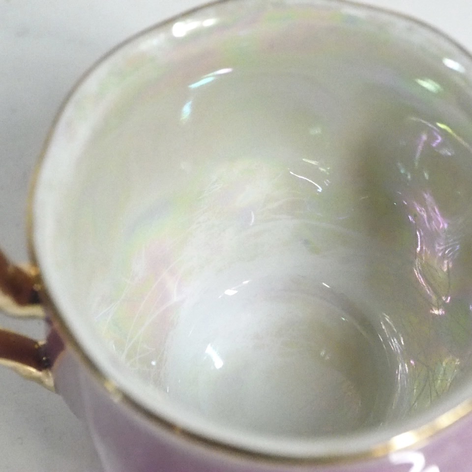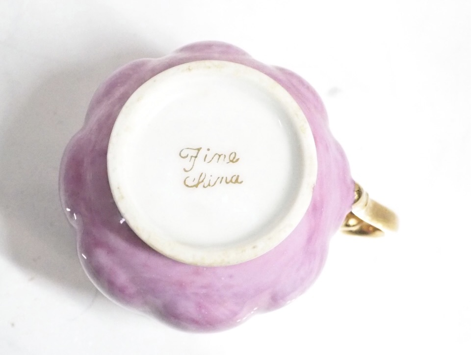 昭和ビンテージ ファインチャイナ カップ&ソーサー5客セット 金彩 ピンク マーブル ラスター彩 1960〜1970年代 KYN602