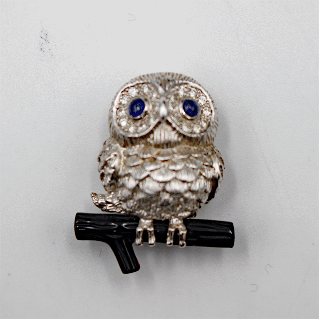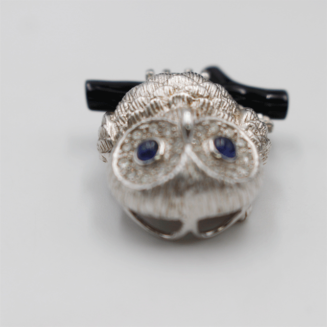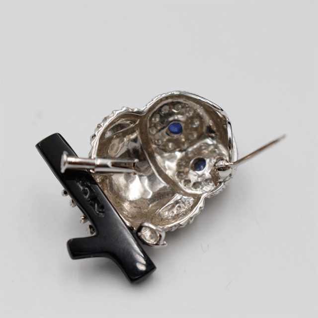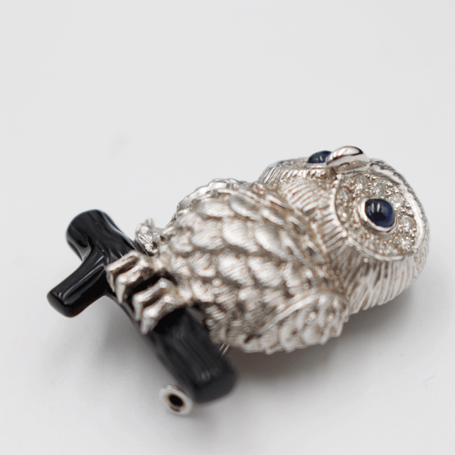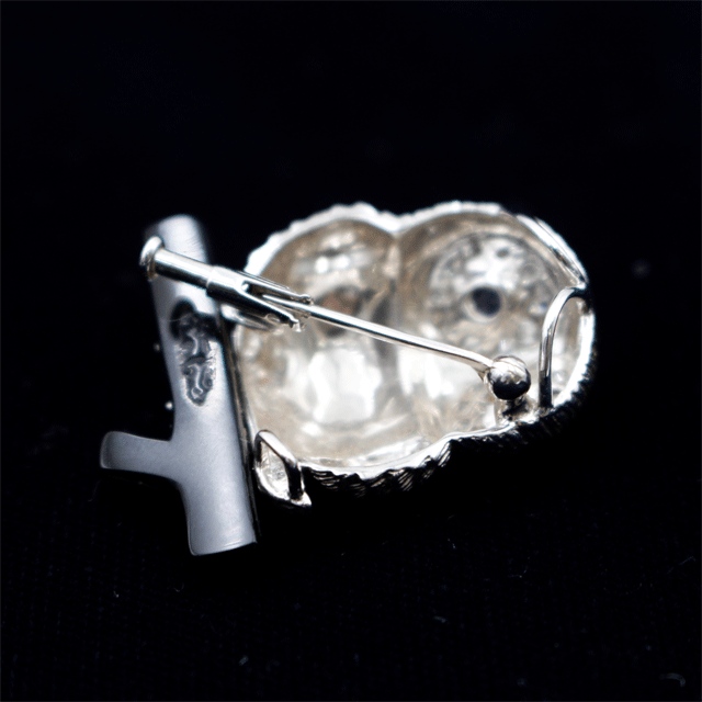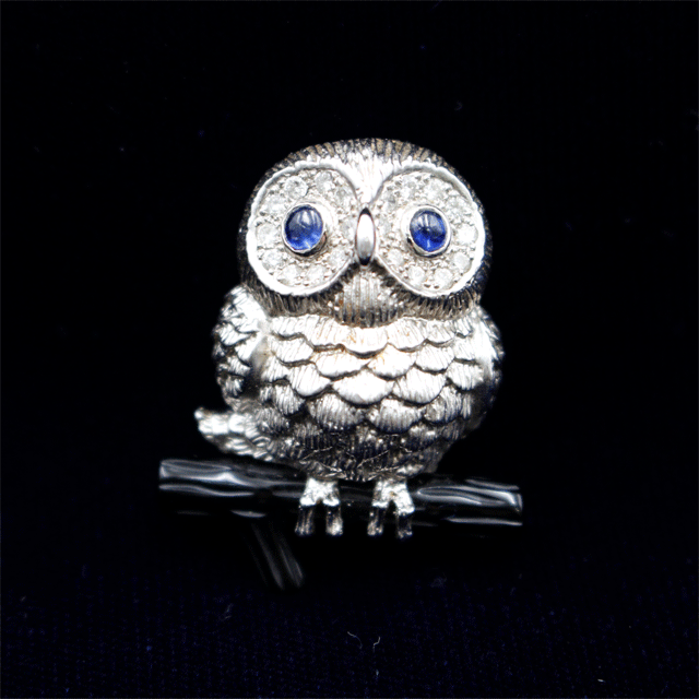 K18WG フクロウモチーフ ブローチ S0.50ct D0.37ct 10.3g |
