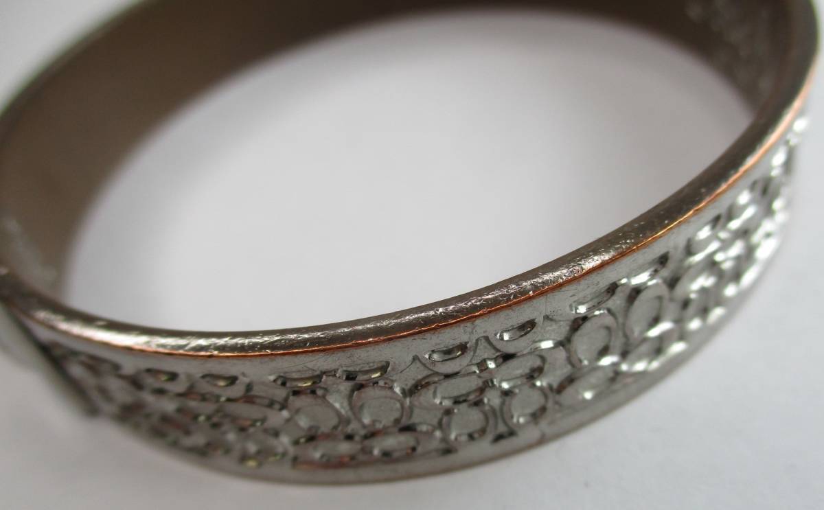 商品名: コーチ バングル ブレスレット シグネチャー柄 ローズゴールド色 サイズ: 約 経6.7㎝ 幅1.2㎝ 総重量: 約46.3g ランク: ABB 付属品: 本体のみ 【状態】 内側小傷や変色が多少あります。 画像が全てになります。画像でご判断ください。 *****販売している全商品について***** 【補足】 ランクにより、見受けられるダメージのあるときは、できるだけ画像表示又は記載してありますが見落としのある場合はご容赦ください。 尚、商品によっては、ほつれ・汚れ・動作不都合などの補修・修理・部品交換・お届け時に電池残量0で電池交換などの必要な費用は、全て落札者様でご対応ください。 《ご注意・ご確認》 【状態】・【補足】欄の内容をご確認いただきご入札ください。 ノークレーム・ノーキャンセルでお願いいたします。 *****下記もお読みください***** 〈ランクを記載している場合の評価について〉 SA : 数回使用した程度のかなり綺麗な中古品 A : キズ汚れがほとんど見られない・目立たない綺麗な中古品 AB : よく見ると小さなキズが少し見えるが、目立つキズは見られない綺麗な 中古品 B : 小さなキズが見られるが程々にきれいな中古品 C : 全体的に使用感があり多少キズのある中古品 D : かなり使用感がありキズ汚れが目立つ中古品 〈ご確認ください〉 ● used品になりますので神経質な方はご遠慮いただき、ご理解のうえノークレーム ノーリターンでお願いします ● 商品ランク、コメント等は当方での評価です。 ● PCの環境上、実物の色と若干違う場合がございます。 ● ブランド品及び貴金属は全て鑑定済みの本物商品ですのでご安心下さい。 万が一、正規ブランド店での判断が偽物とした場合は、確認後に全額返金いたし ます。(お届け日を0日として5日以内にご連絡をください。ご連絡がなく5日を 過ぎた場合はお受けできません。) ● 申し訳ありませんが、土曜、日曜、祝日、お盆、年末年始休暇等は休業の為 ご質問、取引連絡、発送等にお応えすることができません。 平日でも業務の都合や留守の場合は、ご連絡が遅くなることがあります。 ● 応対時間 ~17:00頃までになります。 | ||||