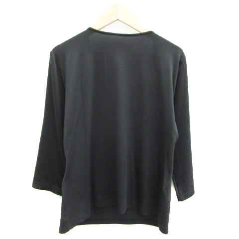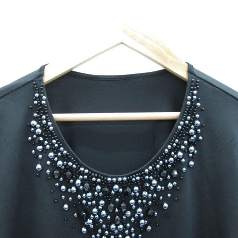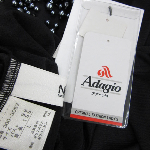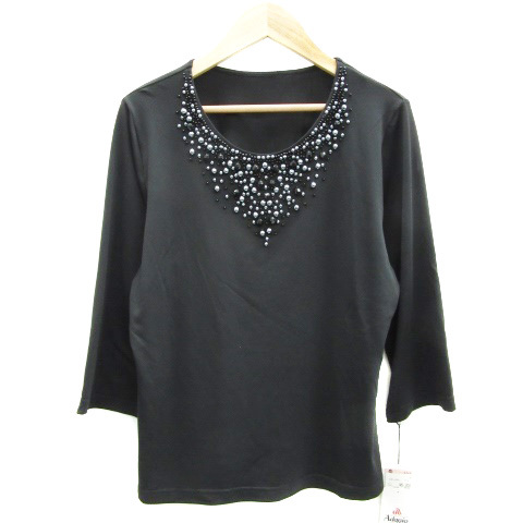 未使用品 アダージョ Adagio NM NICE MIDDY. カットソー 七分袖 ラウンドネック ビーズ 薄手 L ブラック 黒 /YM12 ■MO レディース