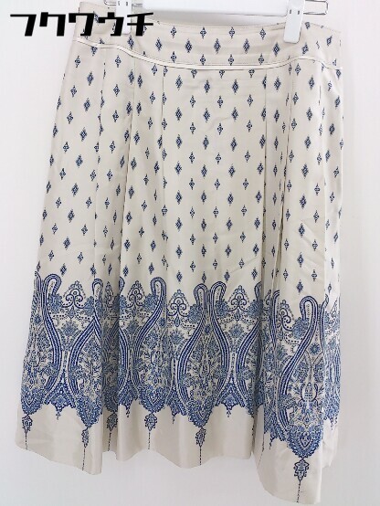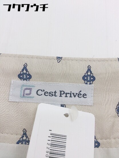 ◇ C'est Privee セプリべ サイドジップ 総柄 膝丈 プリーツ スカート サイズ11 ベージュ ネイビー レディース