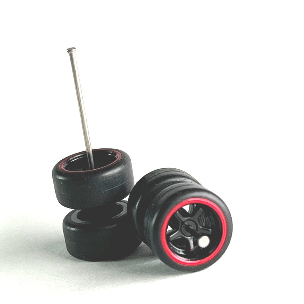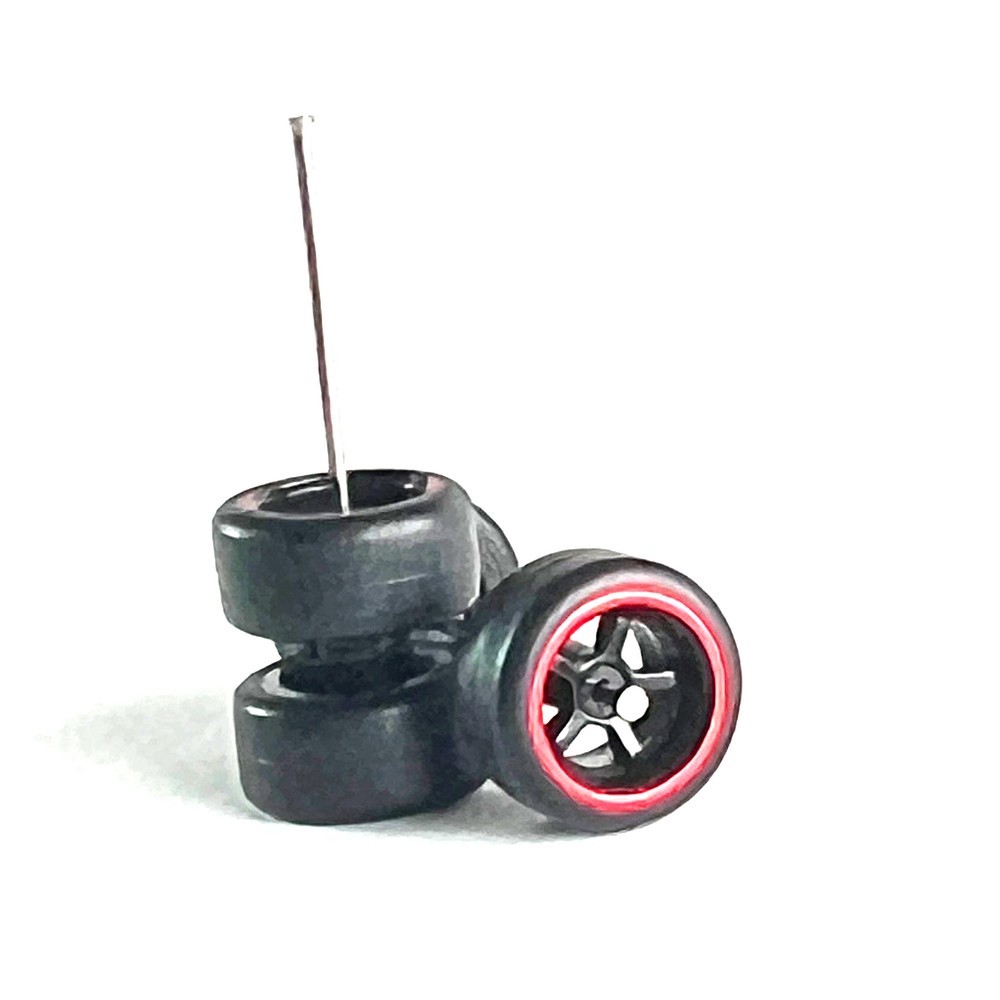 1/64 ミニカー 交換用ホイール WORK ブラックリムレッド 4本セット 車軸付 ホイール直径8ミリ タイヤ外径11ミリ タイヤ厚み5ミリ