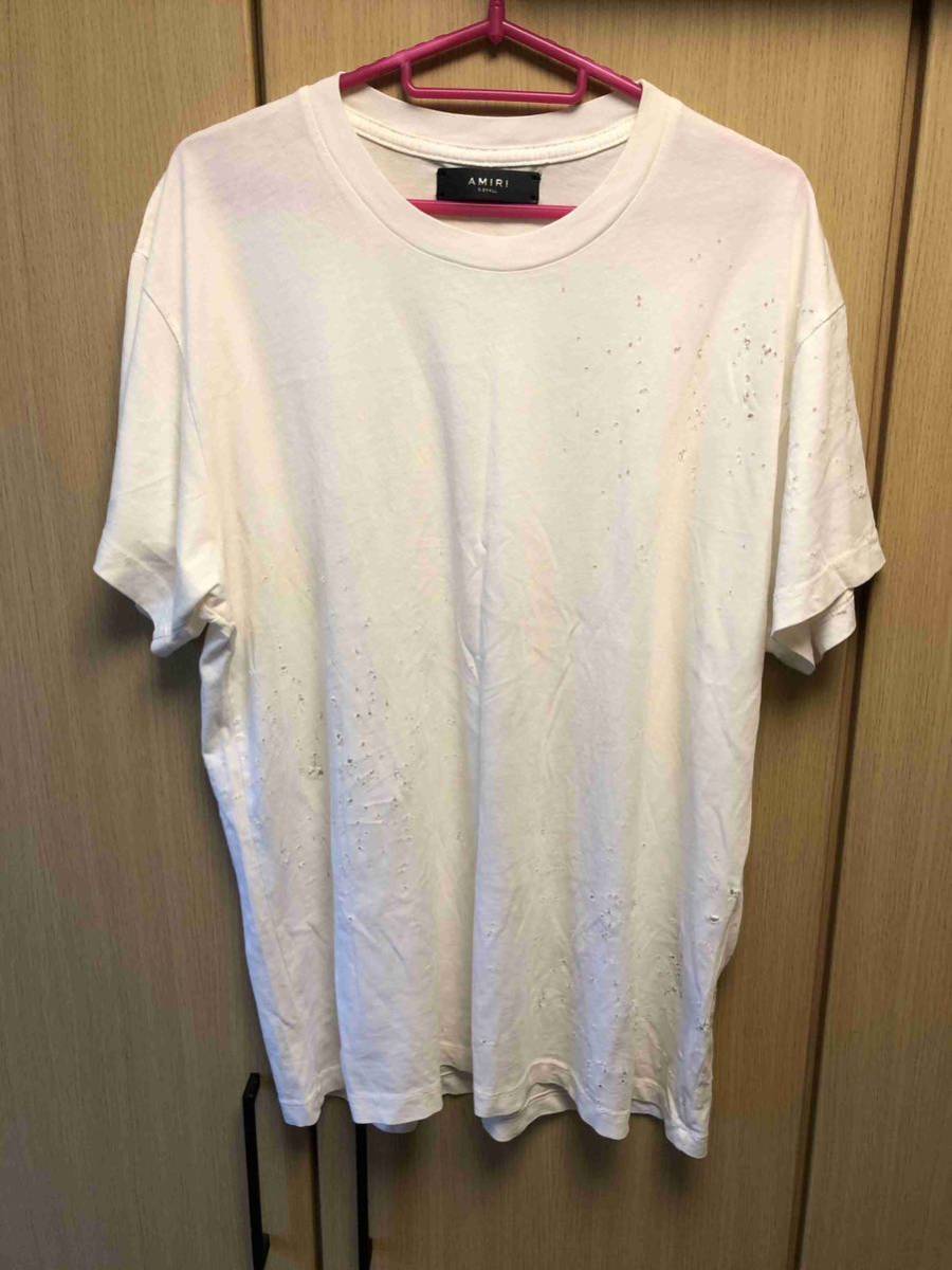 正規 17SS AMIRI アミリ Shotgun ショットガン加工 Tシャツ カットソー 白 XS