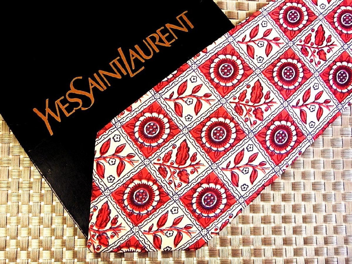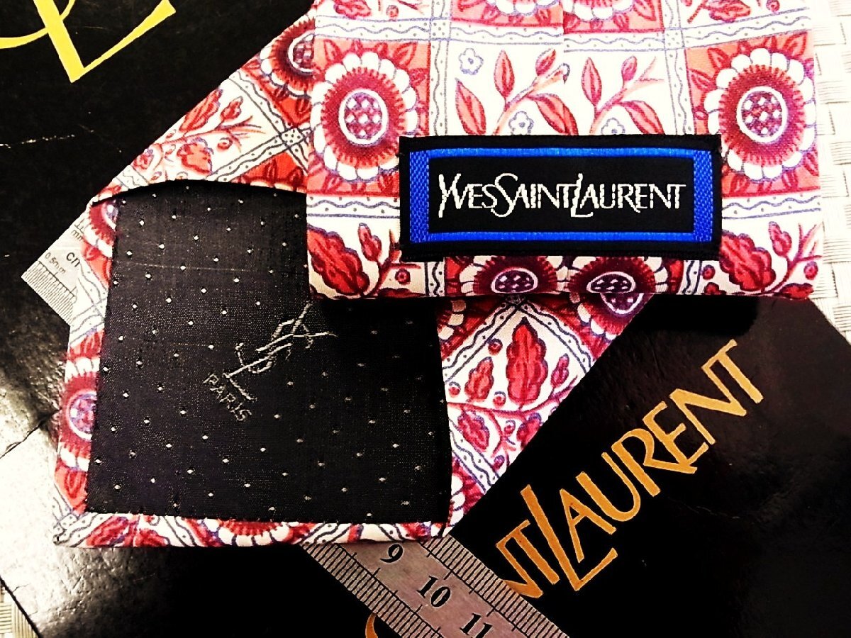 ★RB0280★【花 葉っぱ 植物 柄】サンローラン【美品】ネクタイ