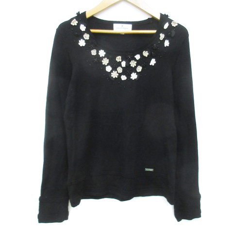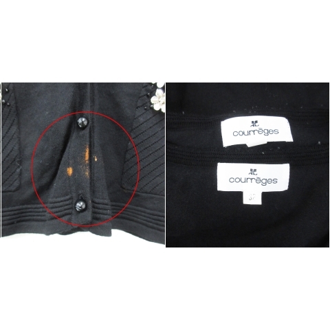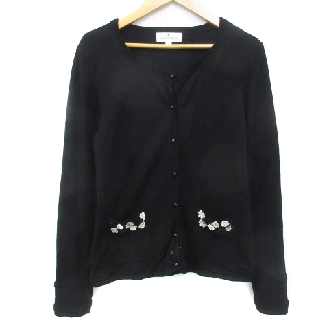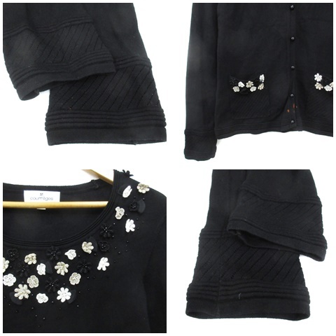 クレージュ アンサンブルニット カーディガン ミドル丈 カットソー 長袖 Uネック レース 花モチーフ 38 黒 ブラック /FF49 レディース