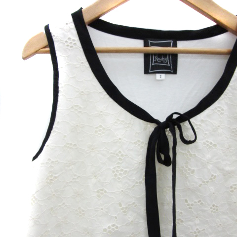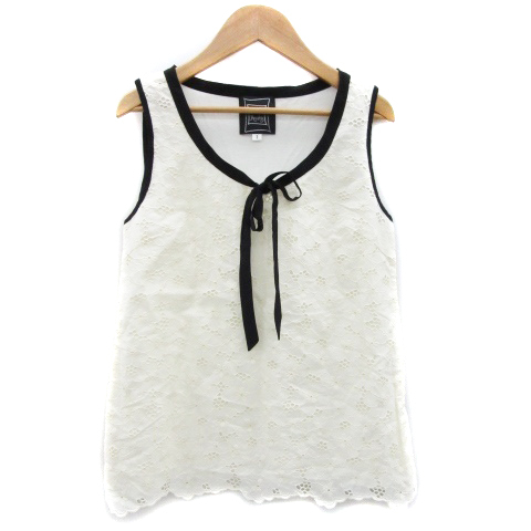 シンシアローリー CYNTHIA ROWLEY ブラウス カットソー ノースリーブ ラウンドネック リボン レース 2 オフホワイト 白 /YM1 レディース