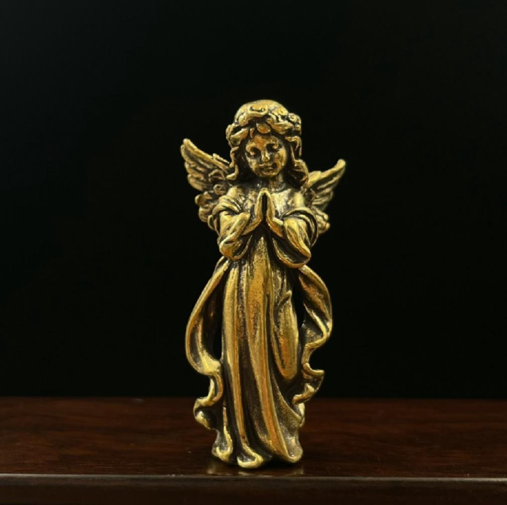 手のりサイズの小さくて可愛い、幸せのお祈りを捧げてくれる真鍮製の天使の置物です!