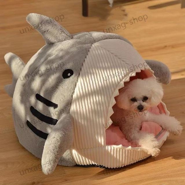 猫 犬 ベッド サメ型ペットベッド ふわふわ 暖か もこもこ 滑り止め キャット ペット クッション 秋冬 グレー Lサイズ MAY668