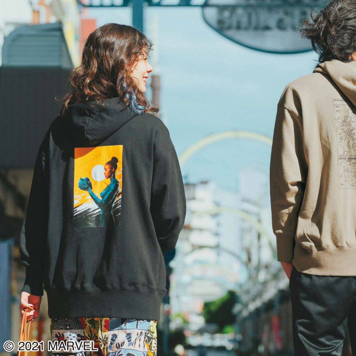 ・ヒーローを背中にあしらったビッグシルエットフーディ。胸もとには王国への忠誠心をアピールできるあのセリフをプリント。正義の心が背中を押してくれるかも……?