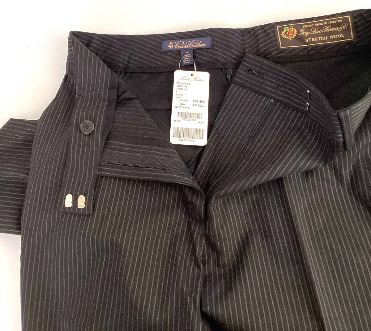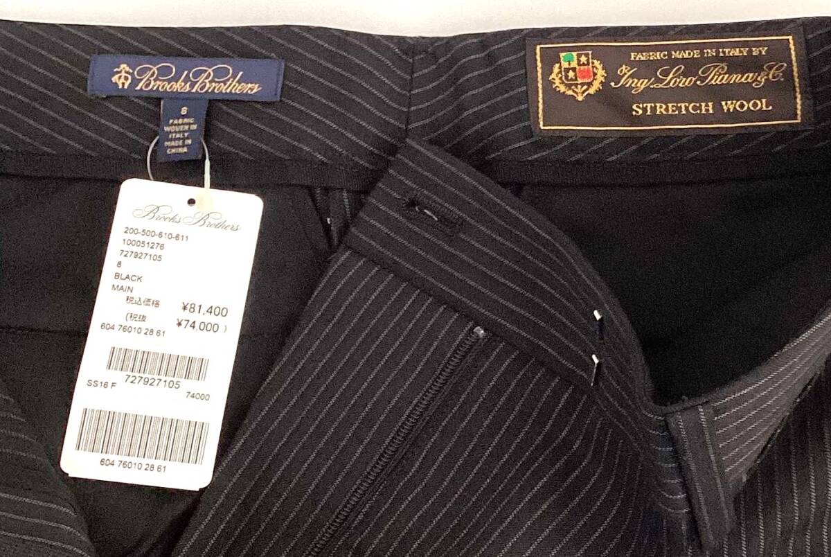 P3 新品未使用 ブルックスブラザーズ レディース パンツ 8号  L相当 定価81,400円 イタリア製 黒 ストライプ