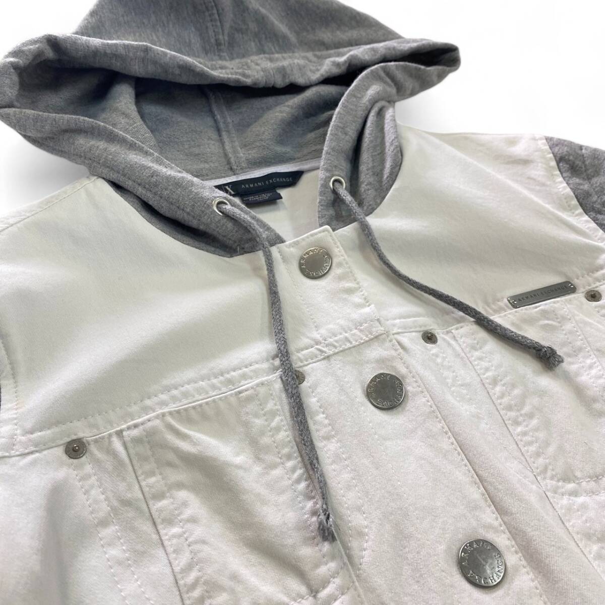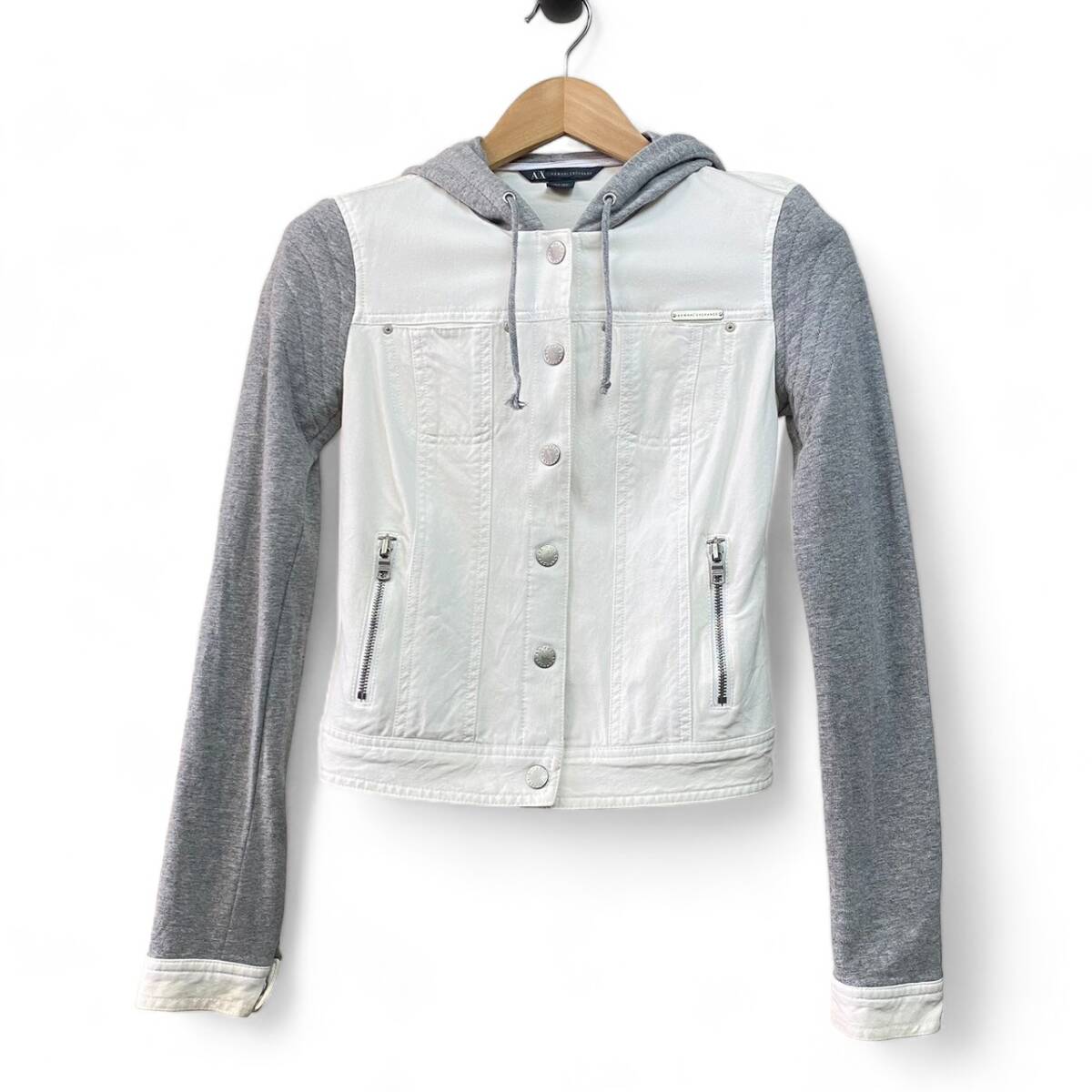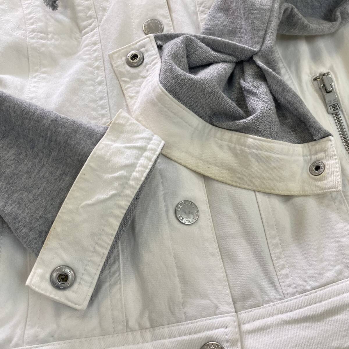 アルマーニエクスチェンジのデニムジャケット。袖の部分が切り替えしデザインとなっており、素材が異なります。