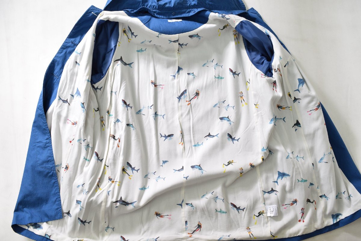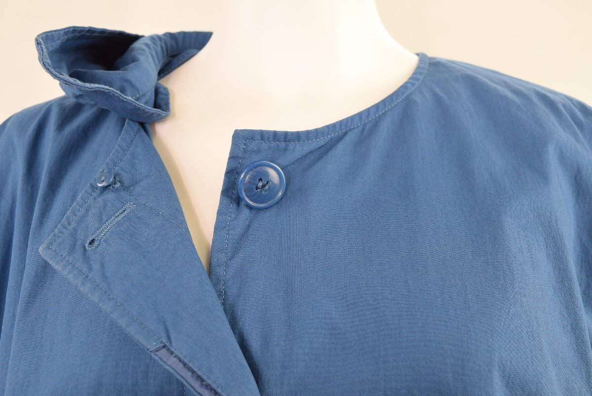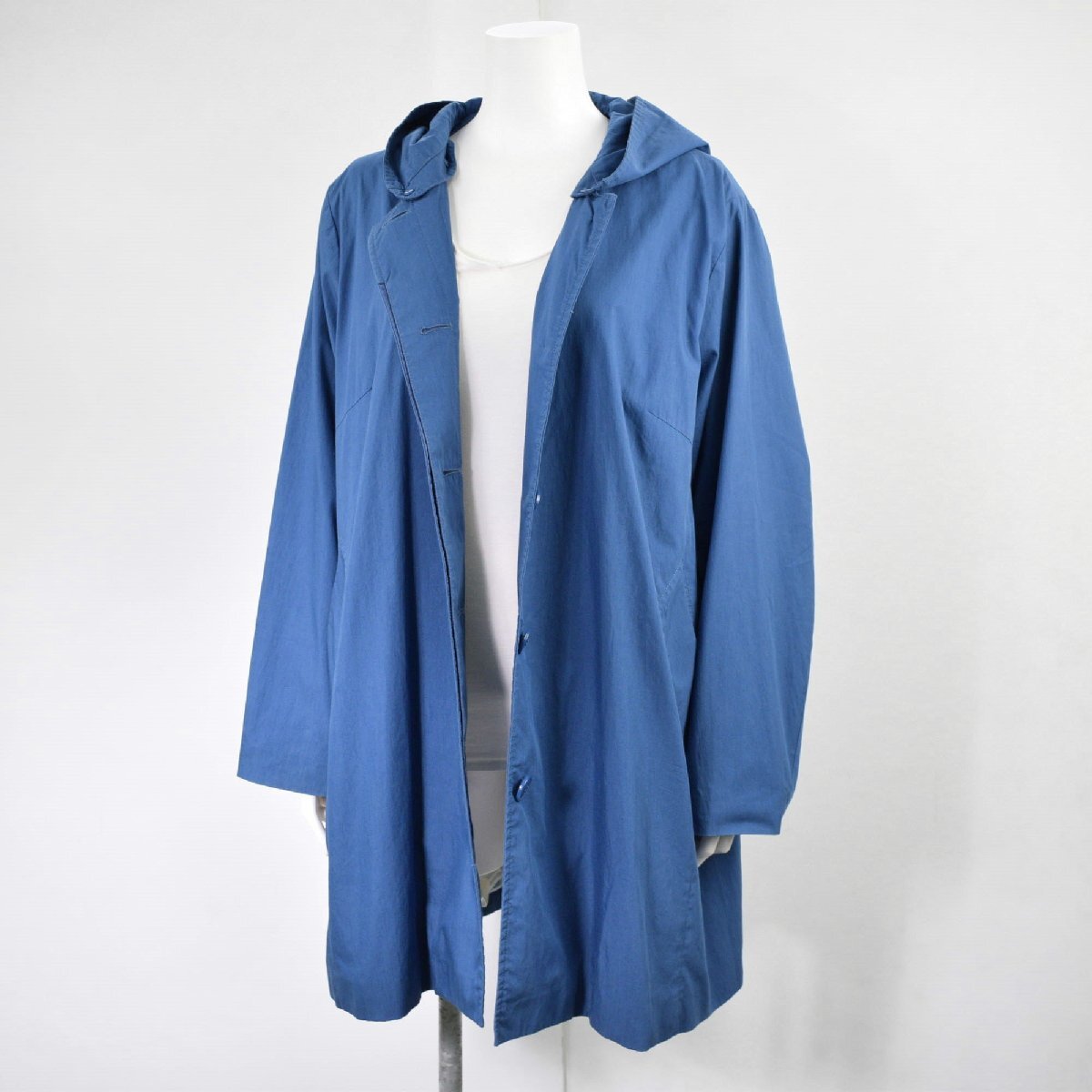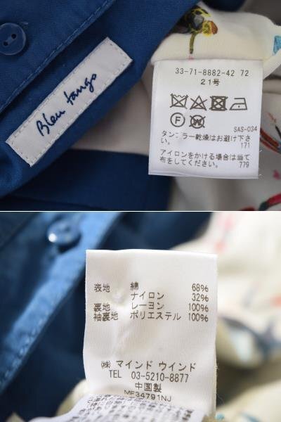 5000-II00295★Bleu tango ブルータンゴ★取外しフード付き ステンカラーコート スプリングコート 青ブルー 大きいサイズ 21号