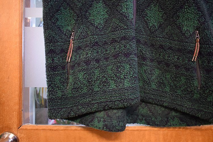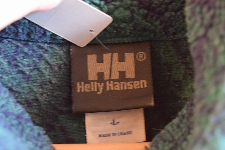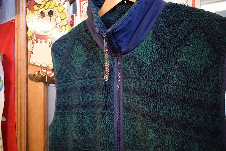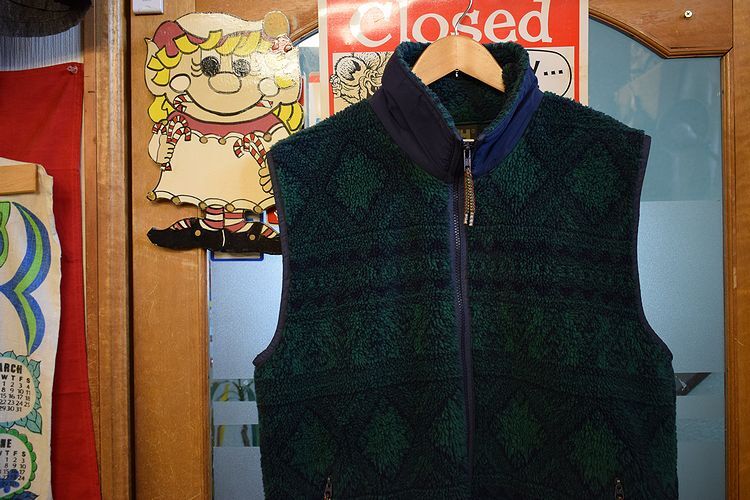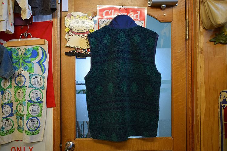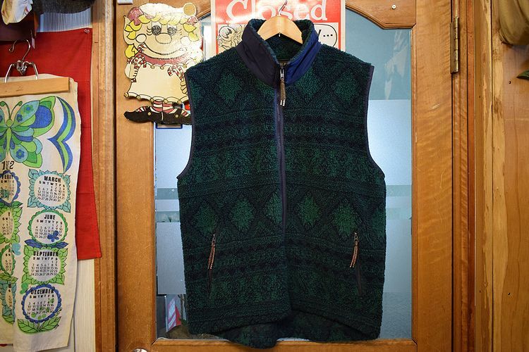 グッドデザインUSA製アメリカ製ビンテージHelly HansenヘリーハンセンフルジップフリースベストL緑総柄アメカジアウトドアストリートh23310