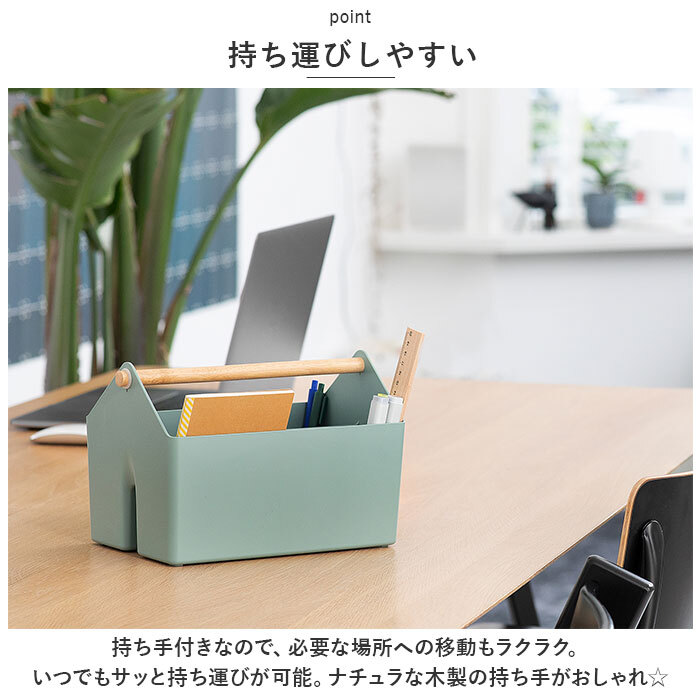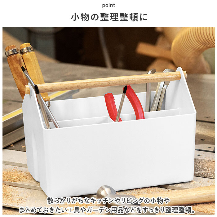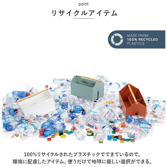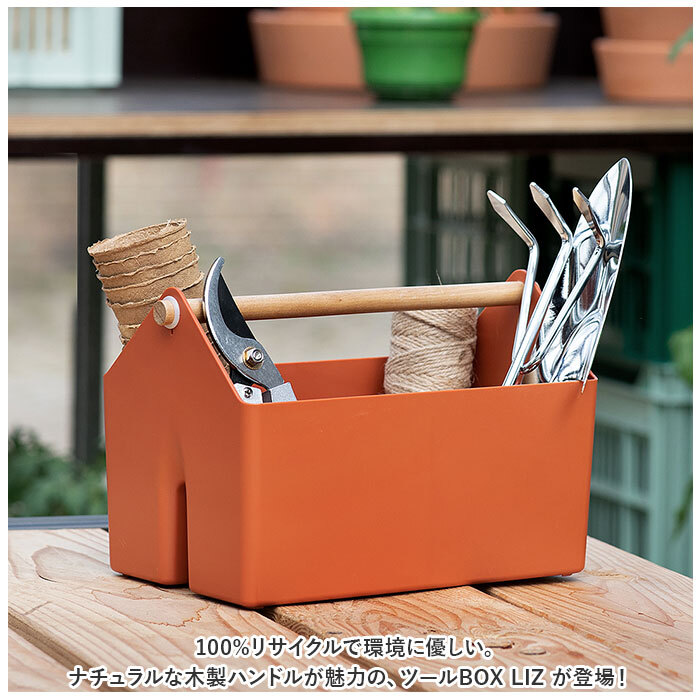 | 商品説明 | ・・・100%リサイクルで環境に優しい。ナチュラルな木製ハンドルが魅力の、ツールBOX LIZ が登場! ・【小物の整理整頓に】 ・散らかりがちなキッチンやリビングの小物やまとめておきたい工具やガーデン用品などをすっきり整理整頓。 ・【持ち運びしやすい】 ・持ち手付きなので、必要な場所への移動もラクラク。いつでもサッと持ち運びが可能。ナチュラな木製の持ち手がおしゃれ☆ ・【リサイクルアイテム】 ・・100%リサイクルされたプラスチックでできているので、環境に配慮したアイテム。使うだけで地球に優しい選択ができる。 ・【スタッキングができる】 ・重ねて収納できる、スタッキングが可能。場所を取らずに縦に収納できるのも嬉しいポイント。 ・【どこに置いてもOK】 ・リビングやキッチン、洗面所、玄関、寝室など、どこに置いてもOK。インテリアに馴染むので、幅広い場所で使用できる。 ・【仕切りつき】 ・細かい物も収納できるよう、仕分けつきの仕様。大きさ別に収納してツールの中はスッキリ整理。 |