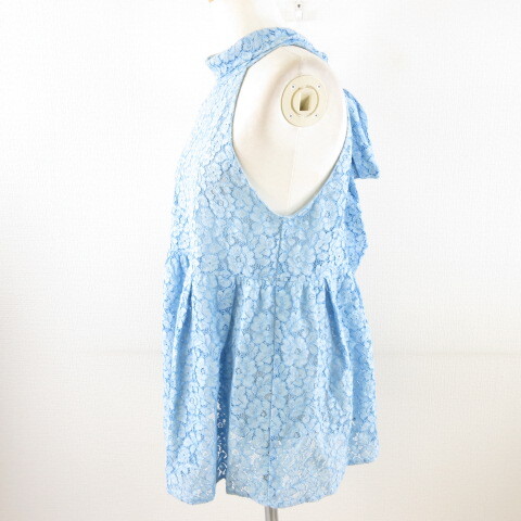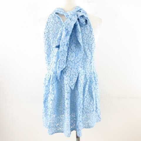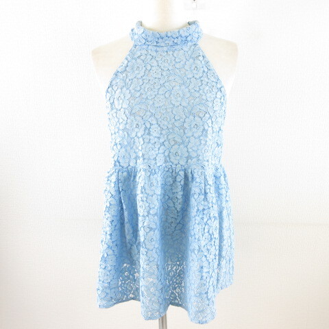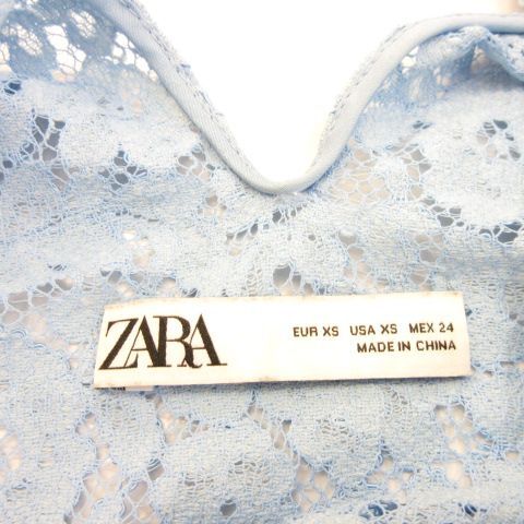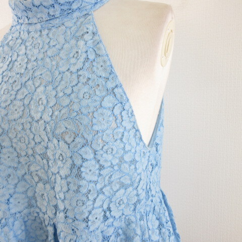 ザラ ZARA 花柄レースカットソー ホルターネック フレア 水色 XS *A472 レディース