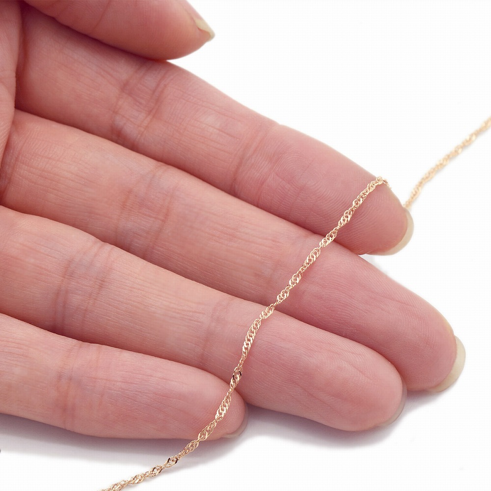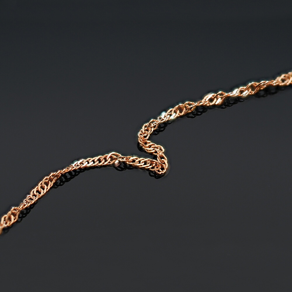 スクリューチェーンとは幾重ものコマをらせん状にねじりながら連ねた、当店一番人気のチェーンです。 繊細なコマの連なりはまるでレース編みの様な美しさがあります。また、ツイスト部分がキラキラと光を反射して華やかな印象を与えてくれるチェーンです。 ![]() |