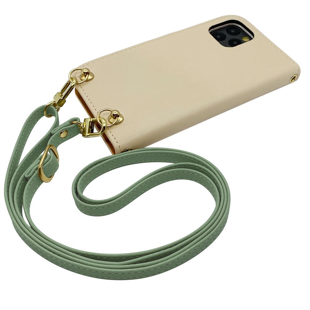 Google Pixel 7 ピクセル7 スマホショルダー(手帳クリーム×ストラップ:アッシュグリーン)カバー 手帳 くすみカラー