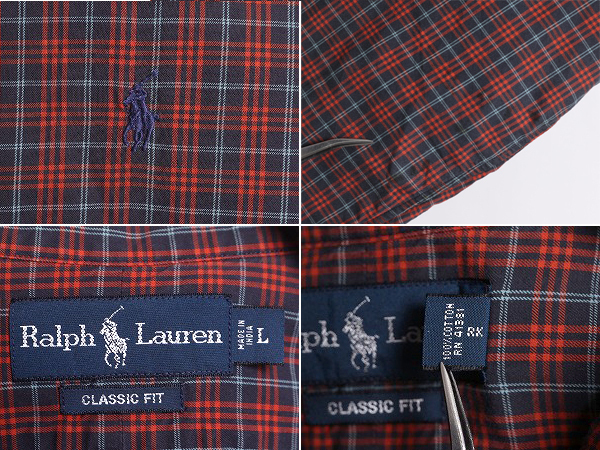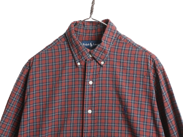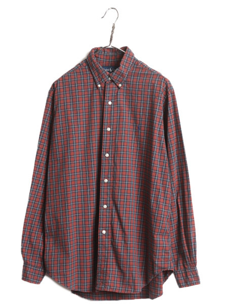 商品名 | 90s ラルフローレン チェック 長袖 ボタンダウン シャツ メンズ L / 古着 90年代 オールド ポロ コットン ワンポイント 長袖シャツ BD 薄手 |