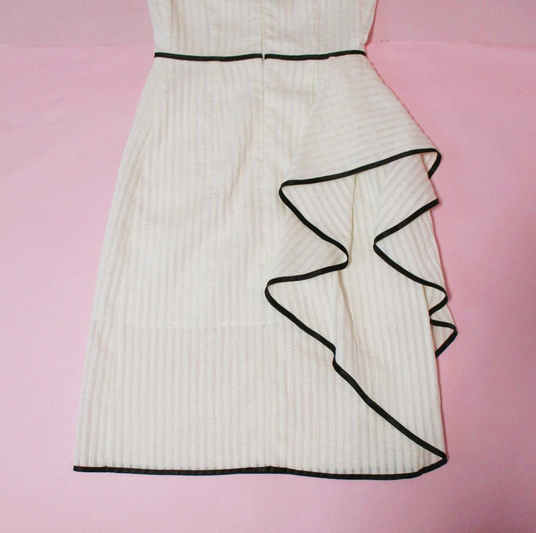 【パオラフラーニ/PAOLA FLANI】ワンピース ラッフルフリル バイカラー イタリア 膝丈 半袖 XS 美シルエット お食事会 お呼ばれ