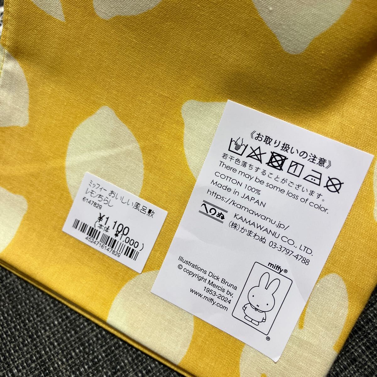 日本製  かまわぬ  おいしい風呂敷  ミッフィー 風呂敷 送料140 新品 50×50cm レモン
