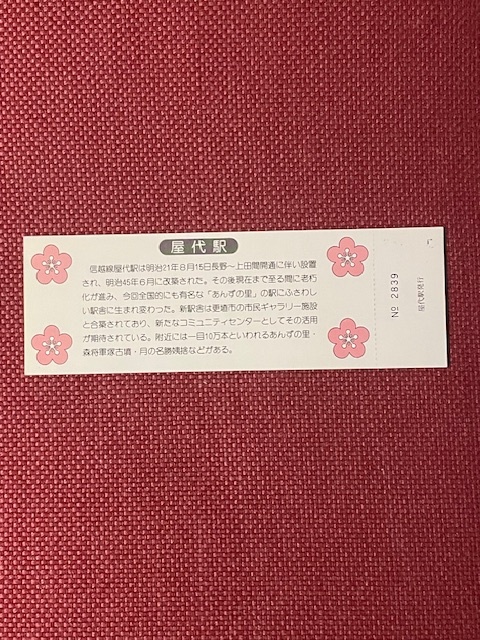 屋代駅改築落成記念入場券 (管理番号23-2)