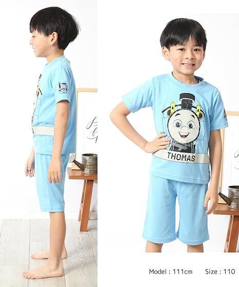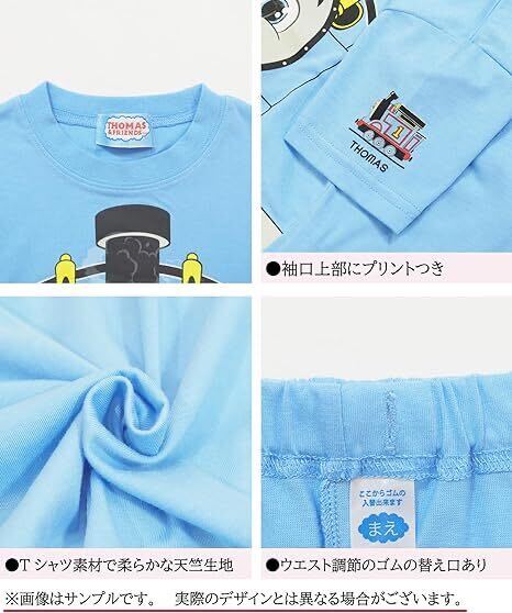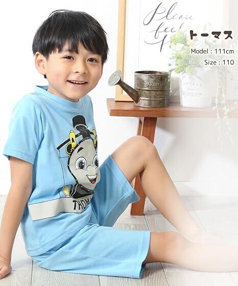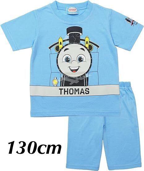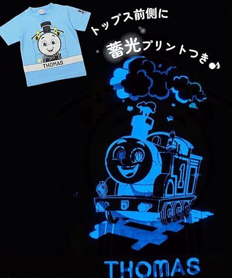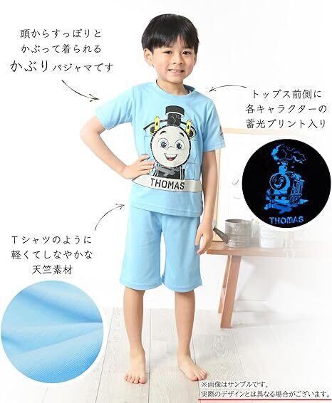 新品62886 きかんしゃトーマス 130cm 光るパジャマ 天竺 半袖半ズボン上下セット ブルー キッズ ルームウェア 蓄光パジャマ