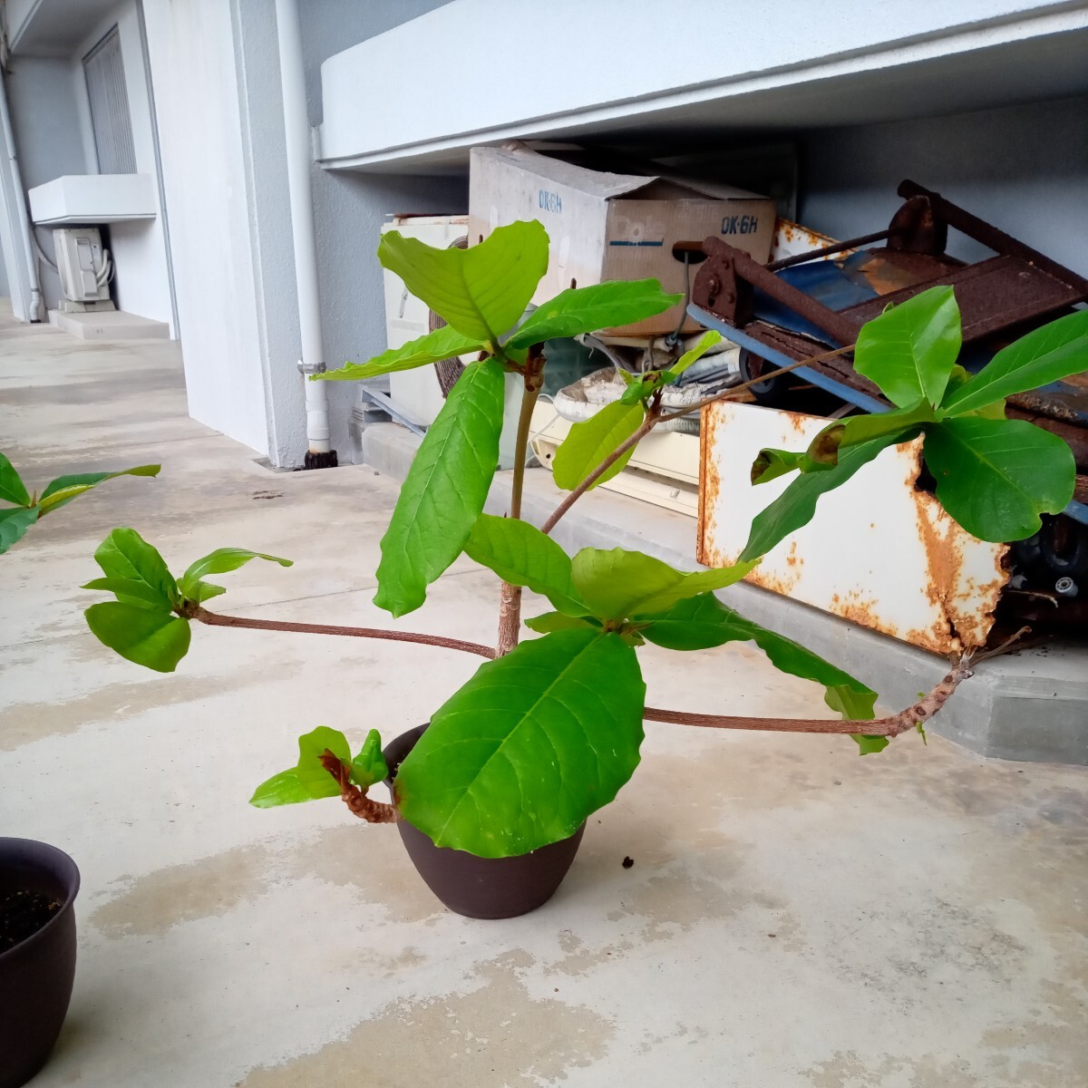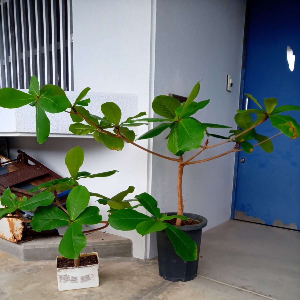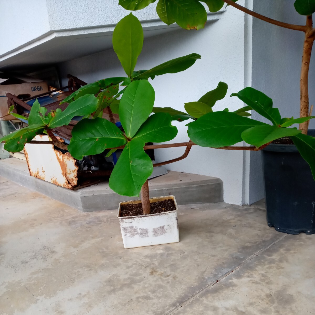 モモタマナ左から育成120日、樹高13センチ、1年育成樹高16センチ、3年育成 樹高35センチ横幅60センチ。4年育成 樹高45センチ横幅75センチ、5年育成 樹高55センチ横幅100センチ、(5年育成屋内様でわありません樹高100センチ横幅120センチ。)