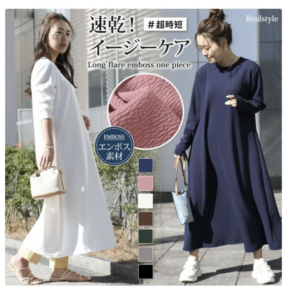 ●イージーケアで大人気!1枚は持っておきたいエンボス長袖ワンピース
