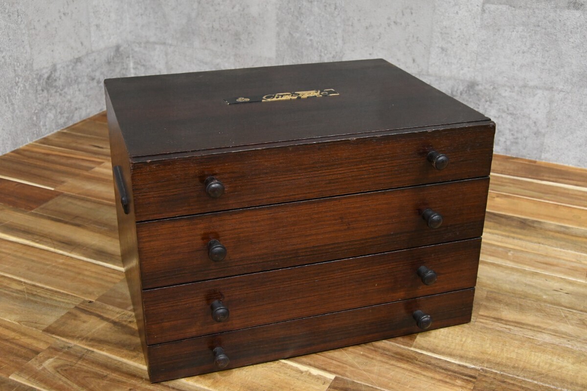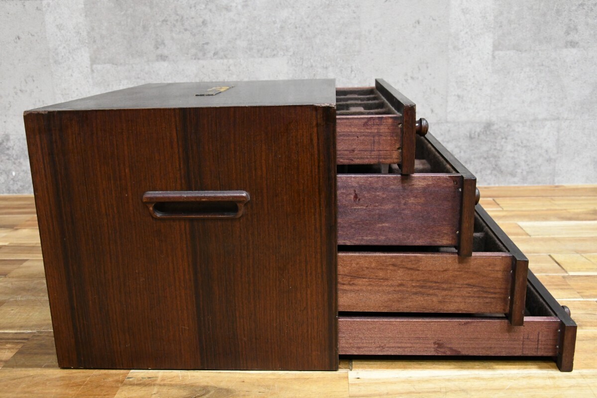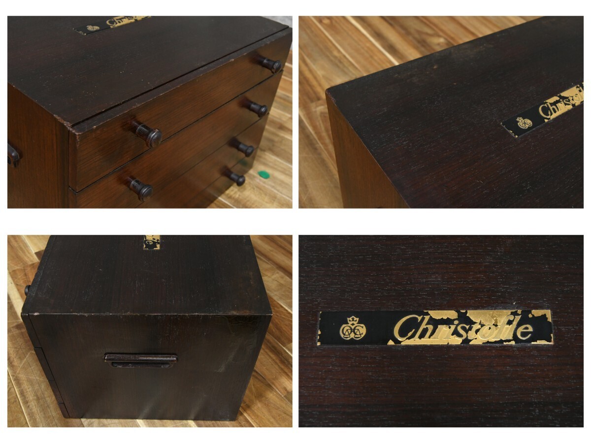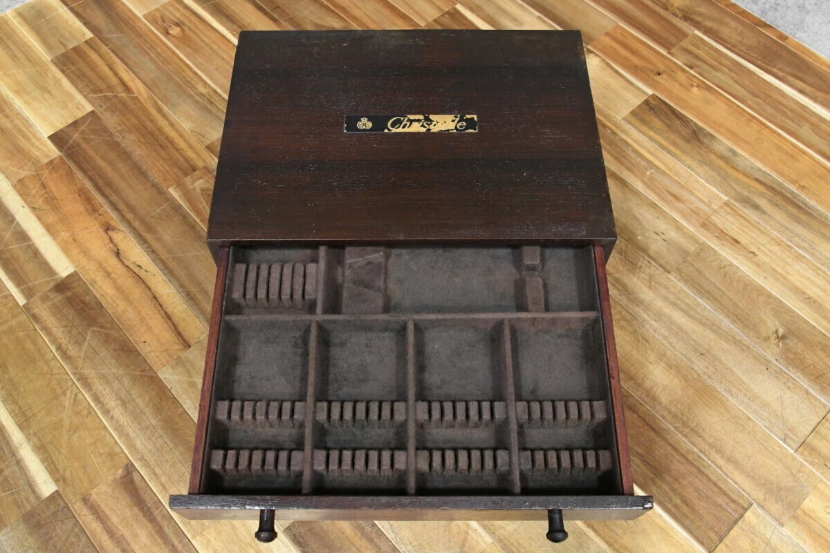 希少 クリストフル Christofle 最高級 ローズウッド カトラリーケース 収納ボックス チェスト 4段 ドロワー 小引き出し の出品です。
