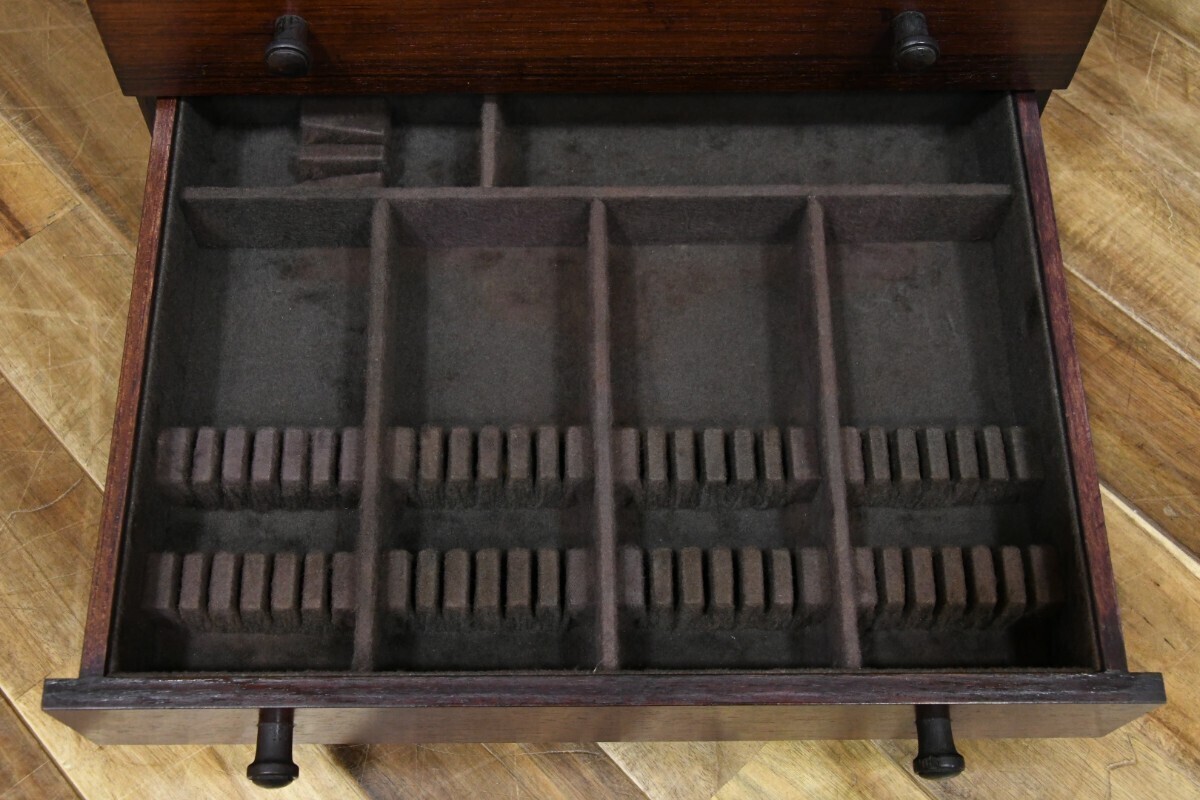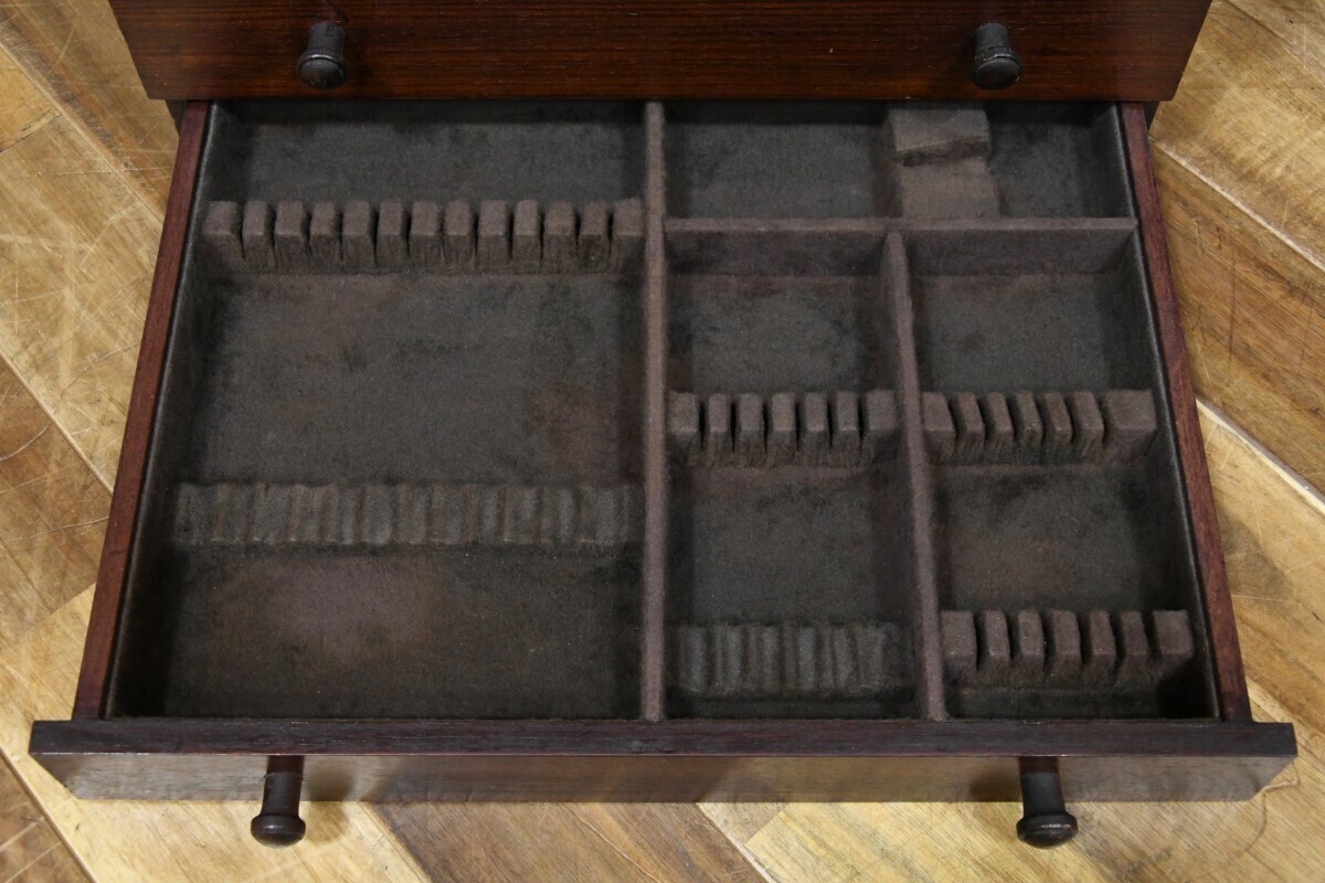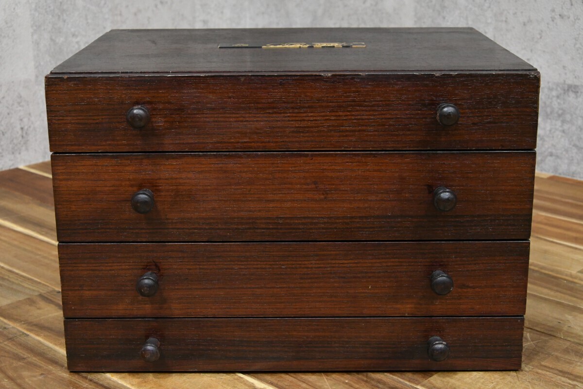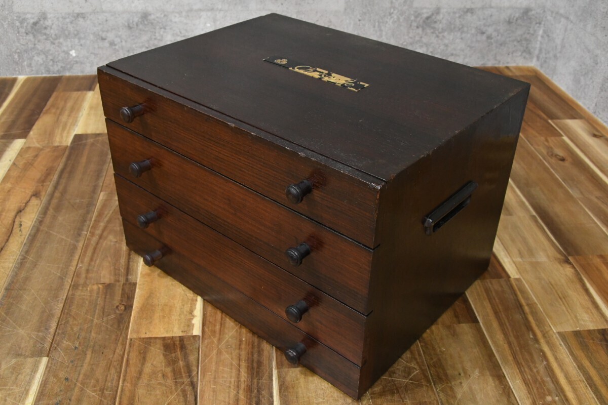 希少 クリストフル Christofle 最高級 ローズウッド カトラリーケース 収納ボックス チェスト 4段 ドロワー 小引き出し の出品です。