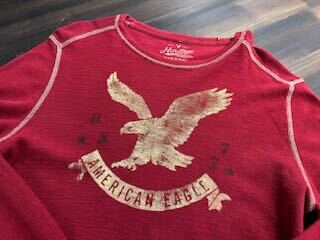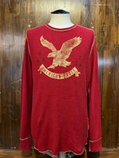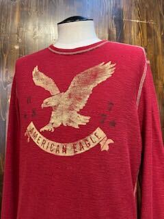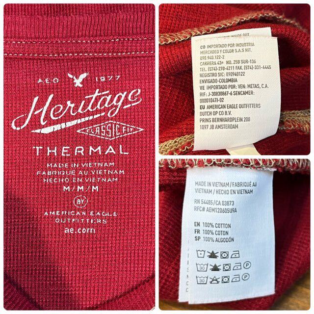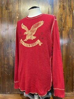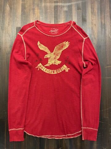 L198 メンズ Tシャツ AMERICANEAGLE OUTFITTERS アメリカンイーグル 長袖 レッド 赤 サーマル ロンT ロングスリーブ M 一律送料520円