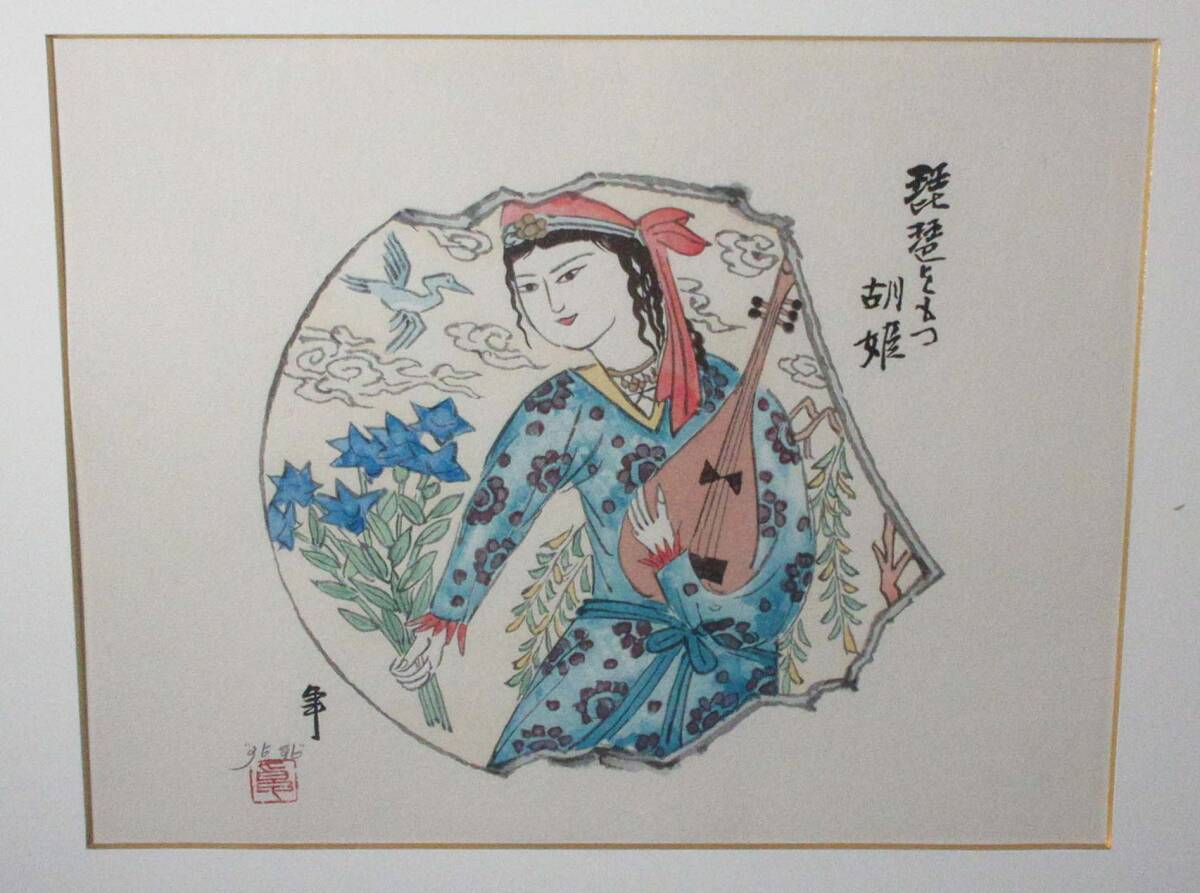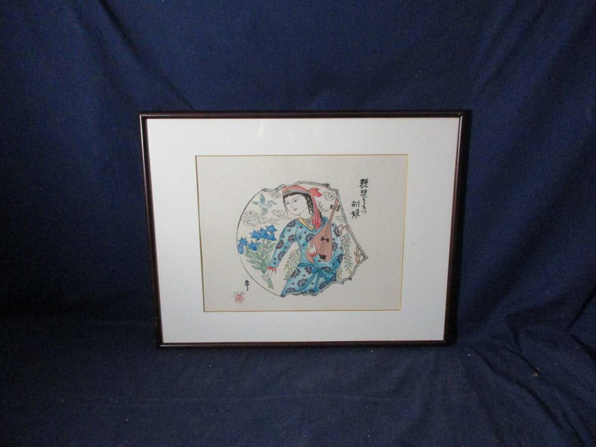 木版画 加藤卓男 作 「琵琶をもつ胡姫」