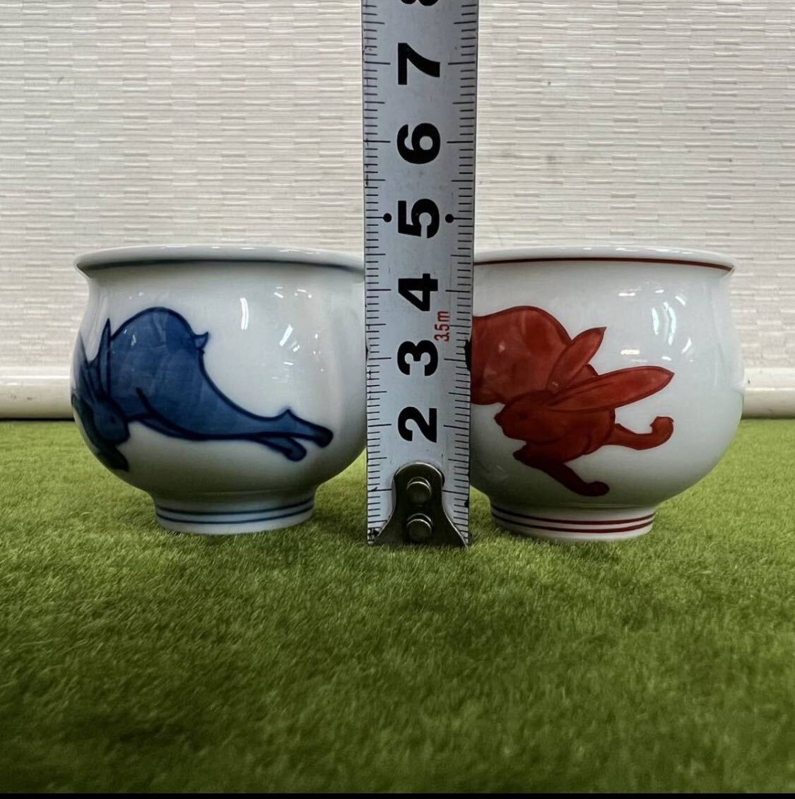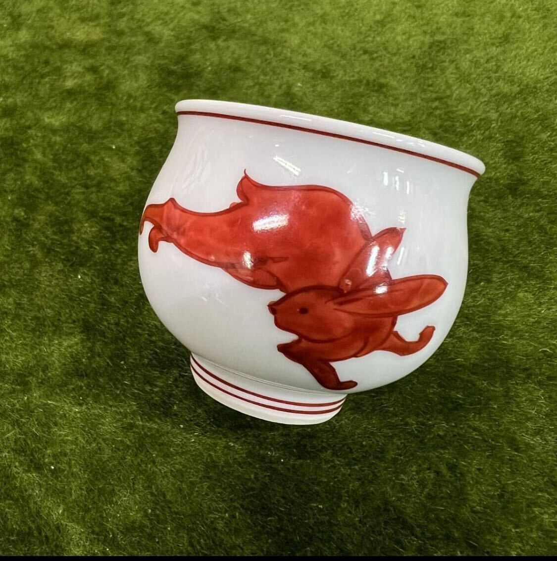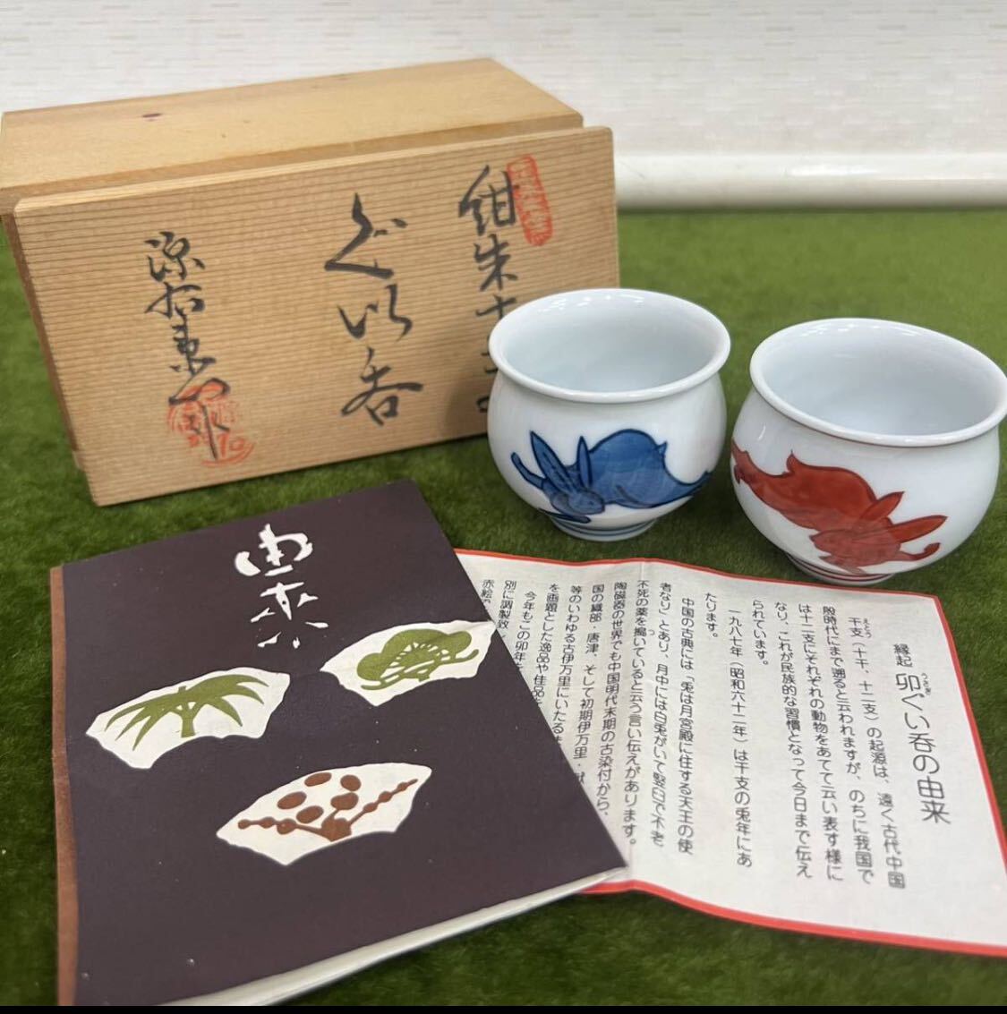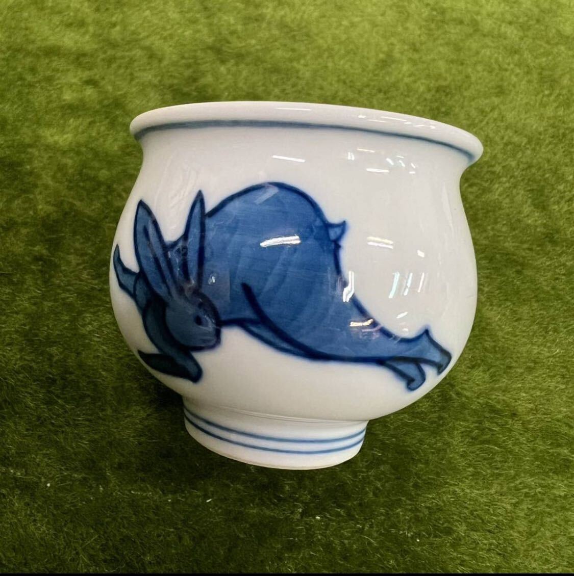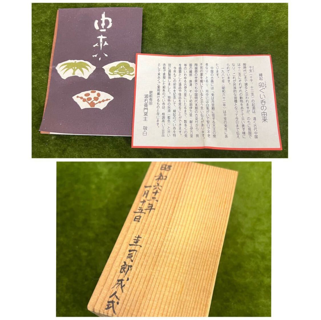 240207 ★☆ 骨董/有田焼 源右衛門/源右衛門窯 紺朱十二支 ぐい呑み/卯ぐい呑み/酒器/元箱あり