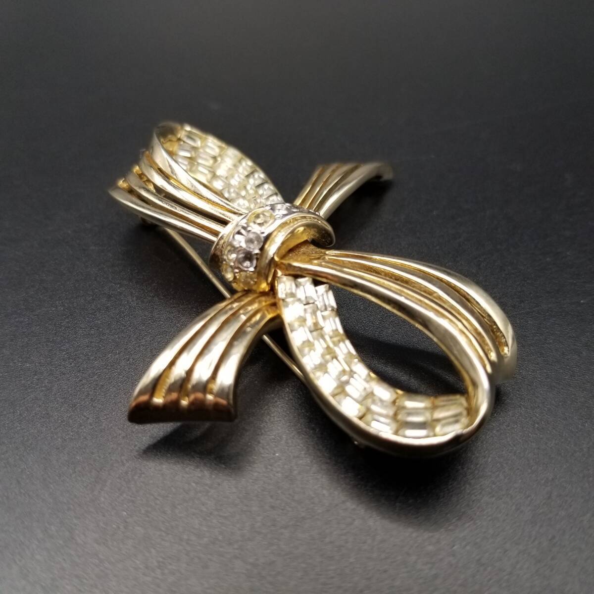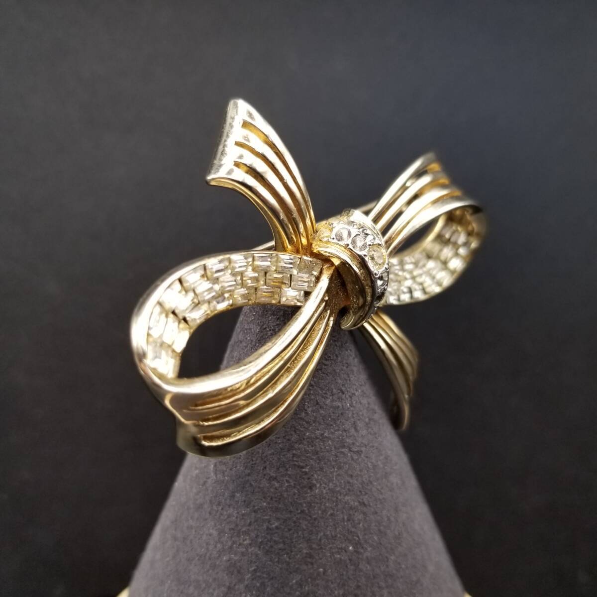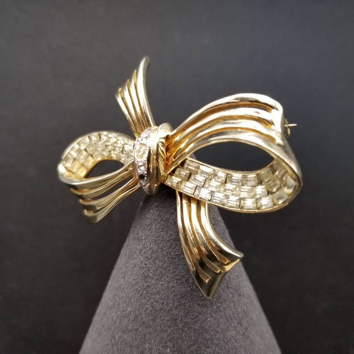 50s 60s Coro craft リボン パヴェ モチーフ クラシック デザイン クリア ストーン キュート ヴィンテージ ブローチ ジュエリー 輸入 Y15-J