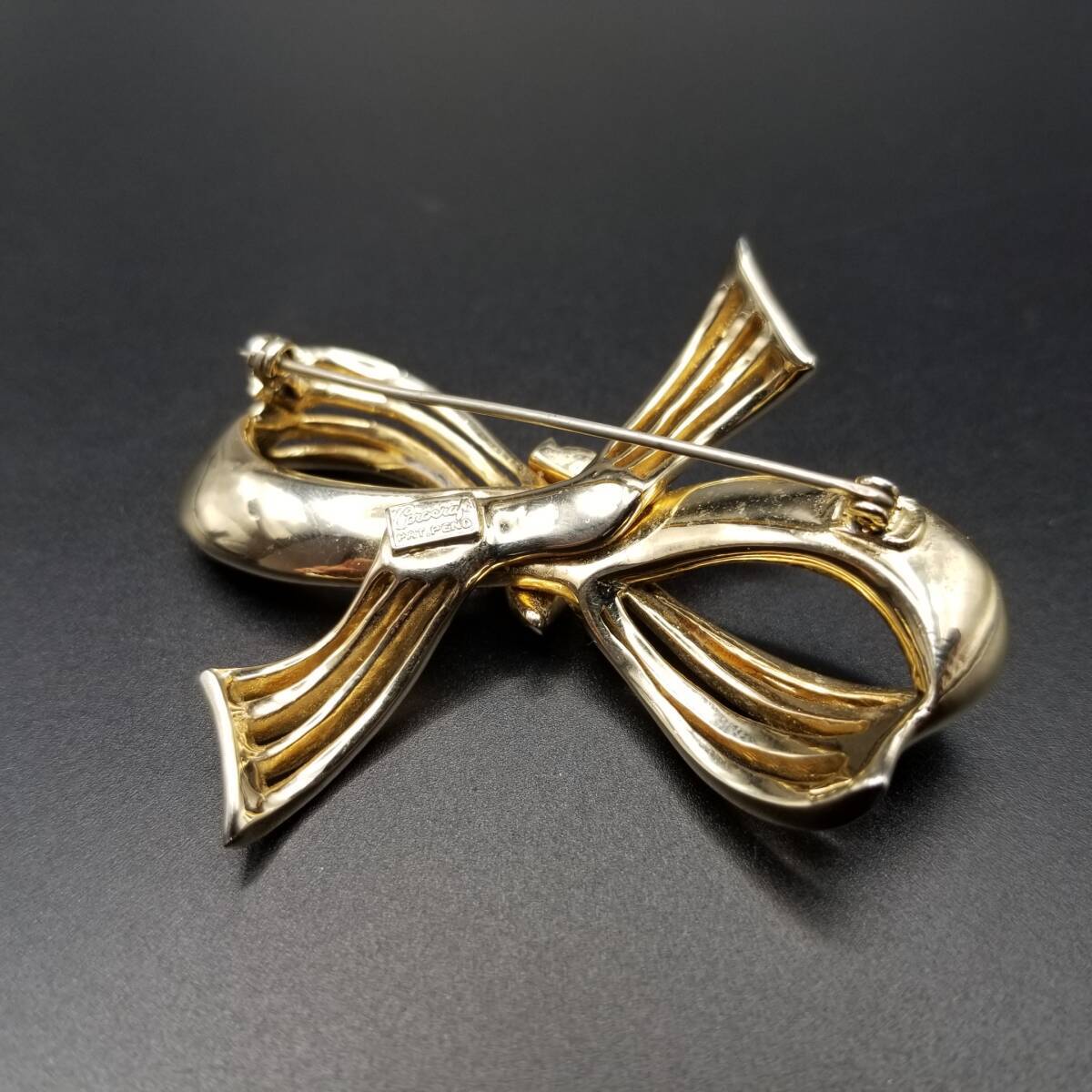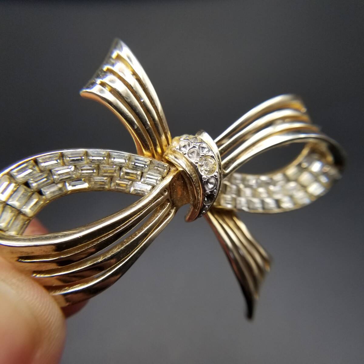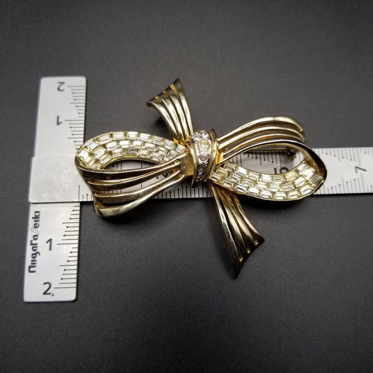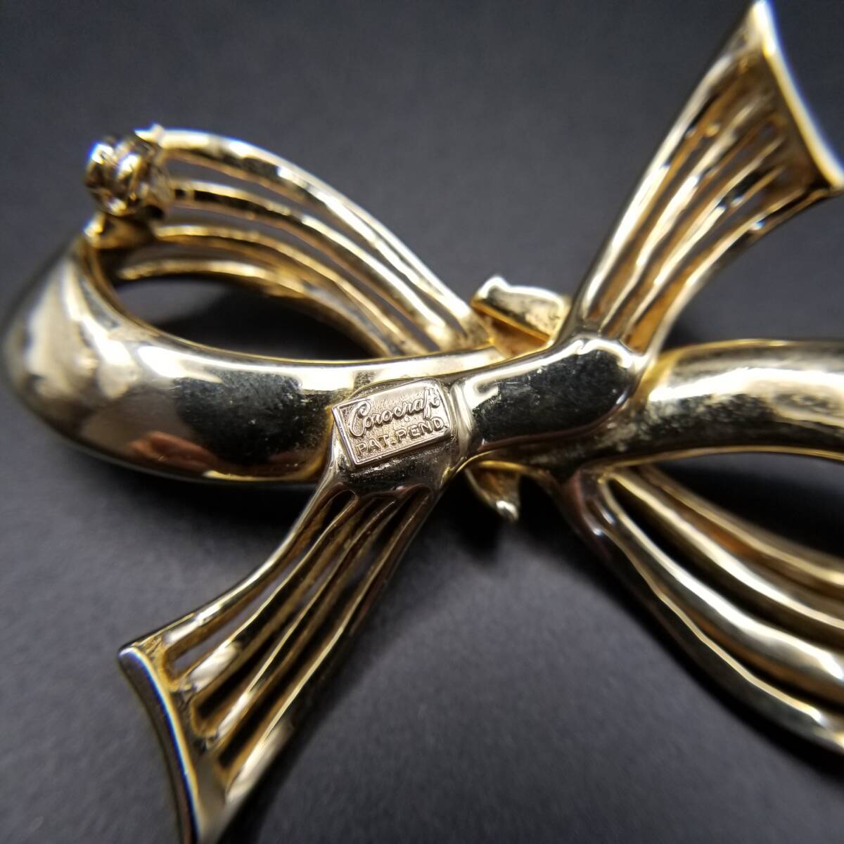 50s 60s Coro craft リボン パヴェ モチーフ クラシック デザイン クリア ストーン キュート ヴィンテージ ブローチ ジュエリー 輸入 Y15-J