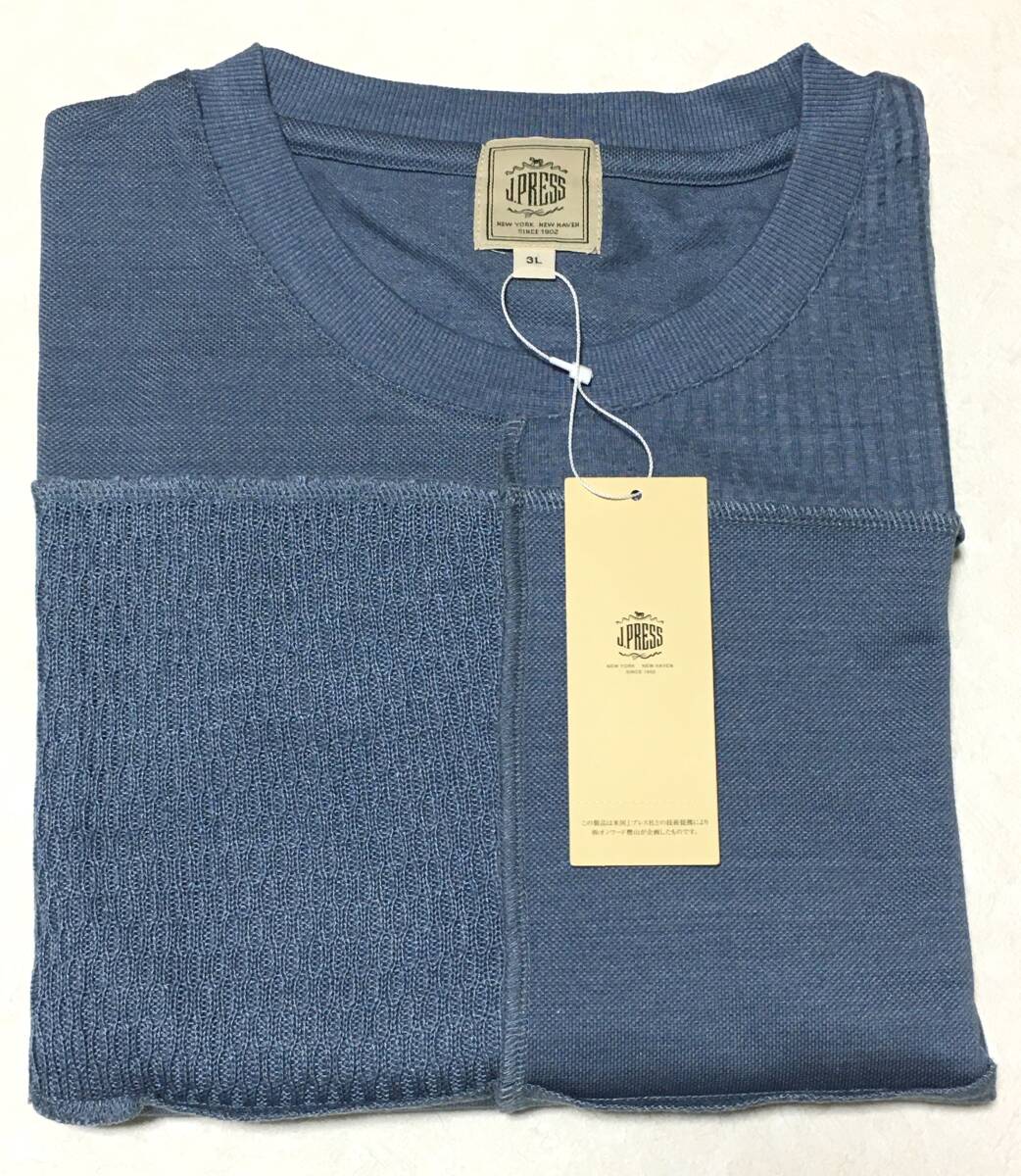 J.PRESS 半袖 ニットシャツ 綿100 3L ブルー ジェイプレス オンワード 定価16.500円
