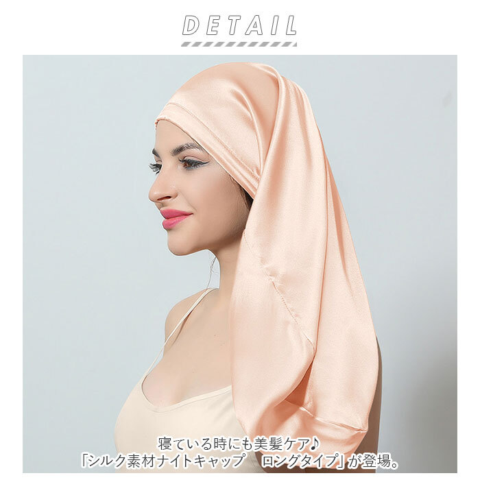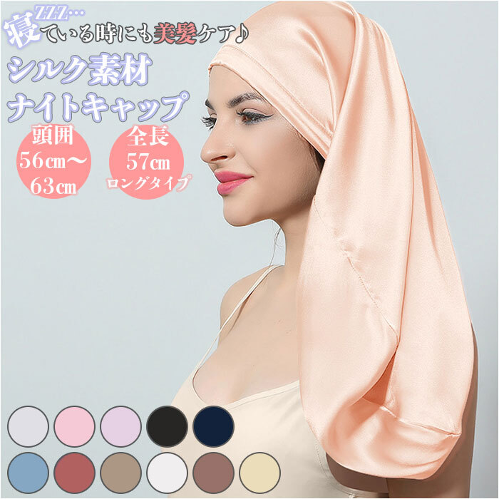 | 商品説明 | ・・寝ている時にも美髪ケア♪「シルク素材ナイトキャップ ロングタイプ」が登場。 ・キャップの跡や寝ぐせがつきにくい、結び具合を調節できるリボンタイプ。背面のゴムでフィット感もUP。 ・使い方はとても簡単。キャップ背面のゴム部分を下にし、髪をまとめてキャップに入れたらリボンを結ぶだけでOK。 ・リボンでかぶり具合をふんわりと調節できるのも、嬉しいポイント♪ ・額にあたる部分は、幅広のリボンタイプ。ぴったりフィットし、ズレにくいのが嬉しい! ・手触りも柔らかなシルク素材が、髪のもつれや枕と髪の擦れなど就寝中のダメージをブロック。 ・ロングタイプでたっぷりと髪を包み込めるので、毛髪量の多い方でも◎ |